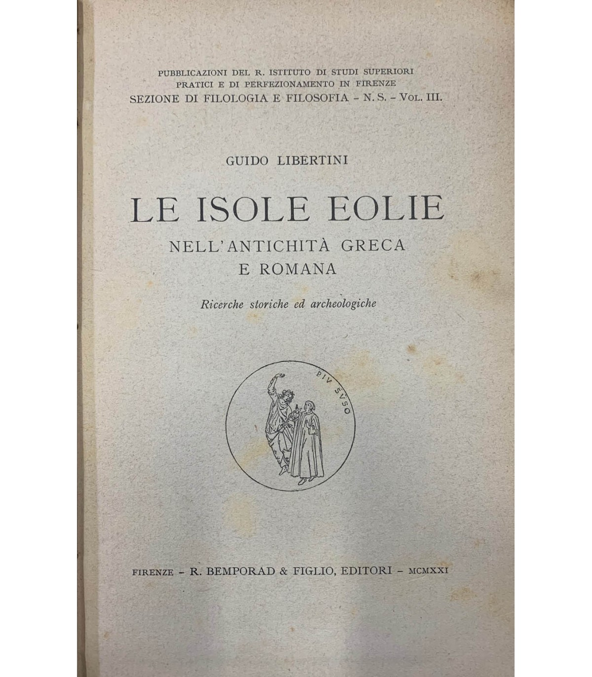Ricerche storiche ed archeologiche. Firenze. Bemporad 1921, 8°, pp. 236, com 8 tavole e una tavola ripiegata f.t. Leg. T.t. edit. Tit. in oro al dorso con sbiaditure. Segni del tempo.