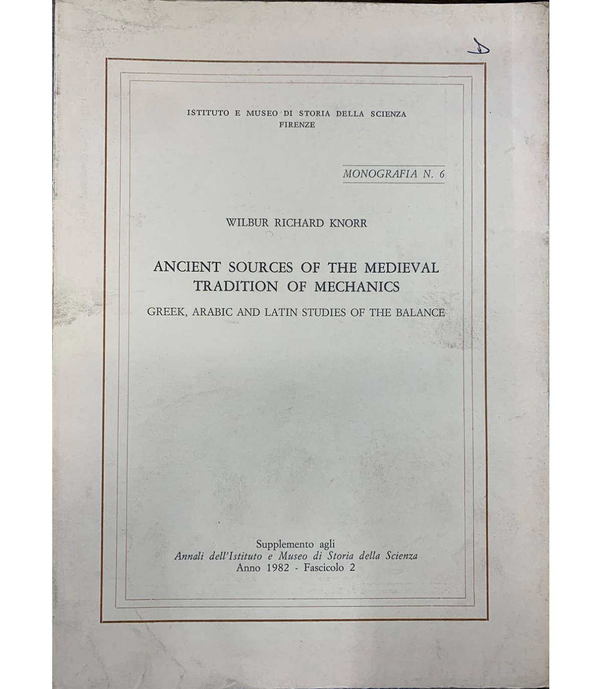 Greek, arabic, and latin studies of the balance. Supplemento agli Annali dell'Istituto e museo di Storia della Scienza Anno 1982 - Fascicolo 2, 8°, pp. 218. Illustrato. Bross. Bruniture.