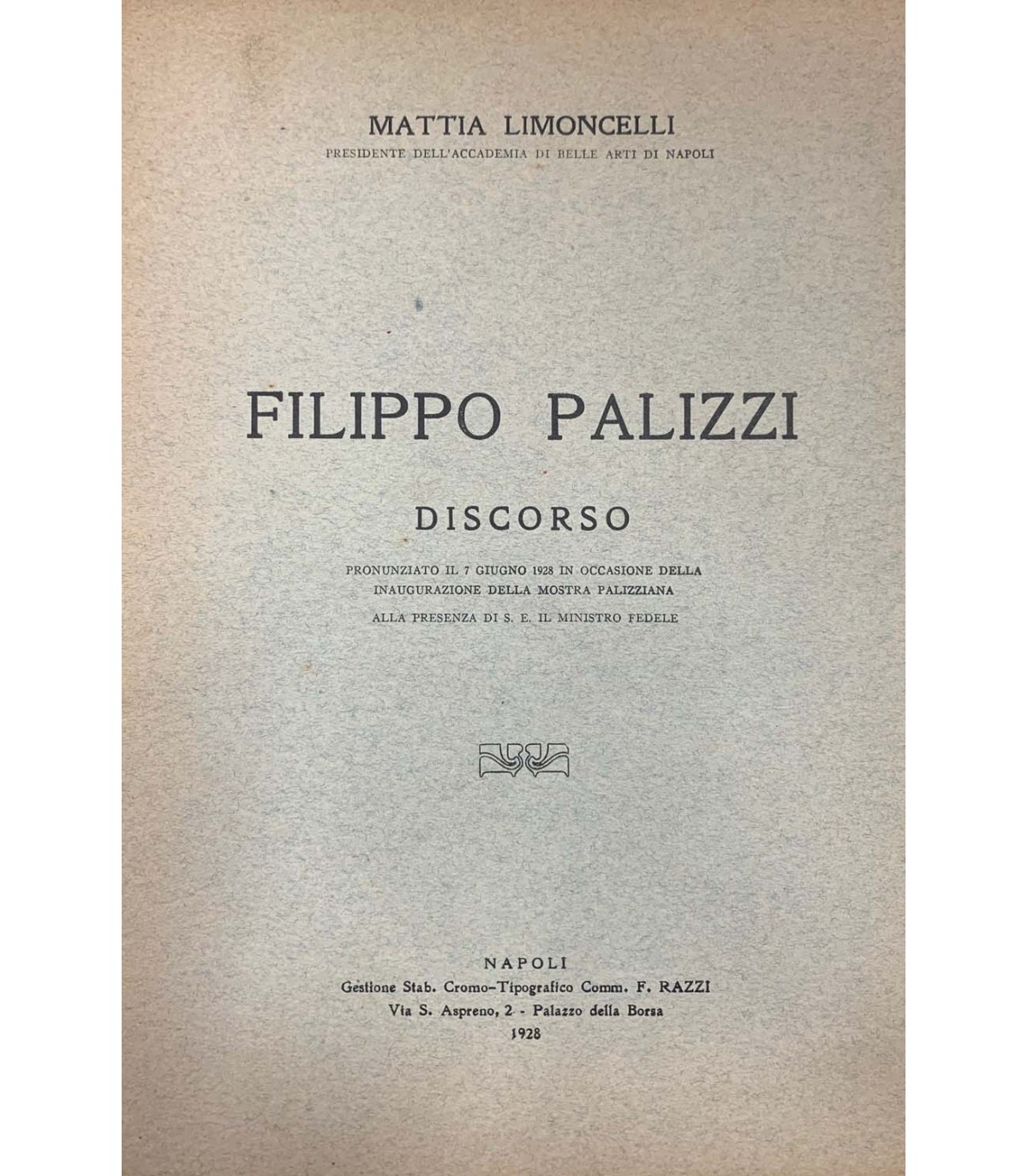 Discorso pronunziato il 7 giugno in occasione della inaugurazione della mostra palizziana alla presenta di S. E. Il ministro Fedele. Napoli. Razzi 1928, 16°, pp. 16