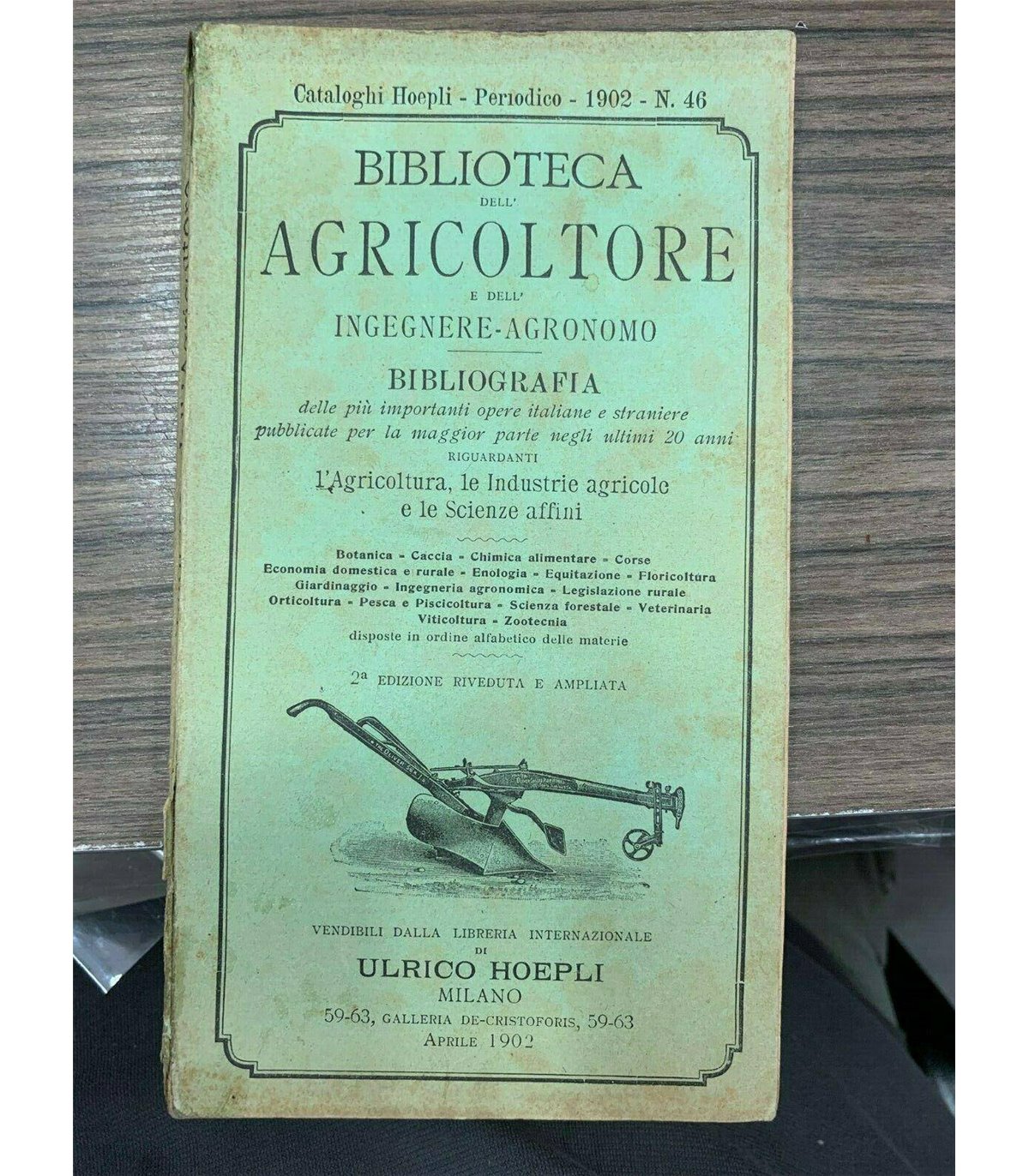 Bibliografia delle più importanti opere italiane e straniere pubblicate per la maggior parte negli ultimi 20 anni riguardanti l'agricoltura, le industrie agricole e le scienze affini. Milano. Hoepli 1902, 16°, pp. 204. Bross.