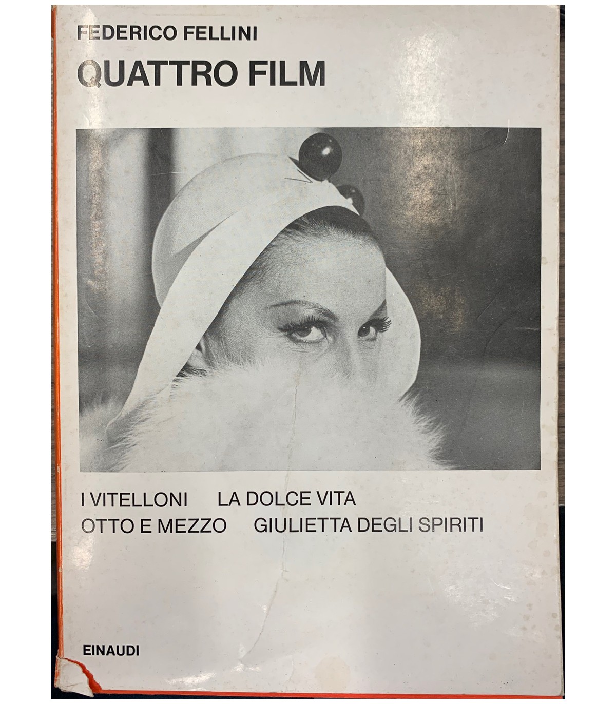I vitellonio - La dolce vita - Otto e mezzo - Giulietta degli spiriti. Torino. Einaudi 1974, 8°, pp. 494. Illustrato. Bross. Sovracc. Con piccole rotture marginali. "Saggi Einaudi".