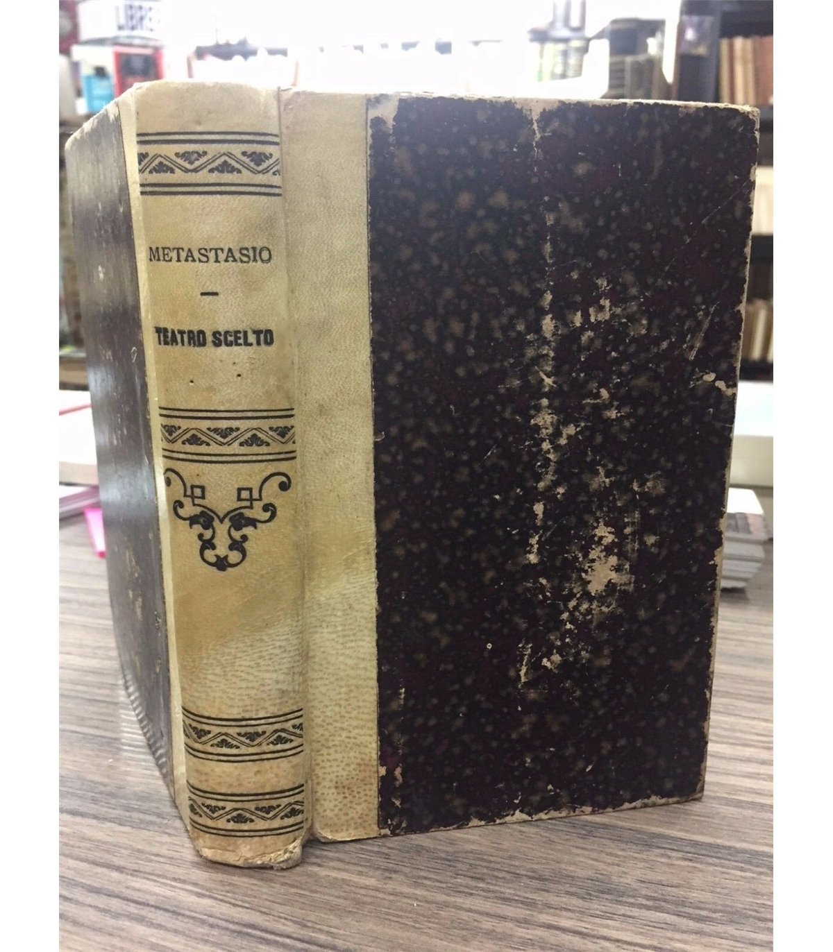 Didone abbandonata. Dramma in tre atti. Roma. Perino 1891, 16°, pp. 64. Unito: La Clemenza di Tito. Dramma in 3 atti, pp. 64. Unito: Attilio Regolo. Dramma in 3 atti, pp. 64. Unito: La Semiramide. Dramma in 3 atti, pp. 80. Unito: Ezio. Dramma in 3 atti, pp. 64. Unito: Demofoonte. Dramma in 3 atti, pp. 64. Unito: Ciro riconosciuto. Dramma in 3 atti, pp. 78. Unito: Olimpiade. Dramma in tre atti, pp. 72, con tavole a colori f.t. Leg. mz perg. coeva, tit. al dorso.