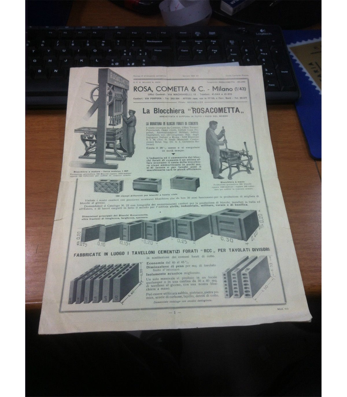 La muratura in blocchi forati di cemento. Milano. Depliant di 6 pagine. Illustrato. Segni del tempo.