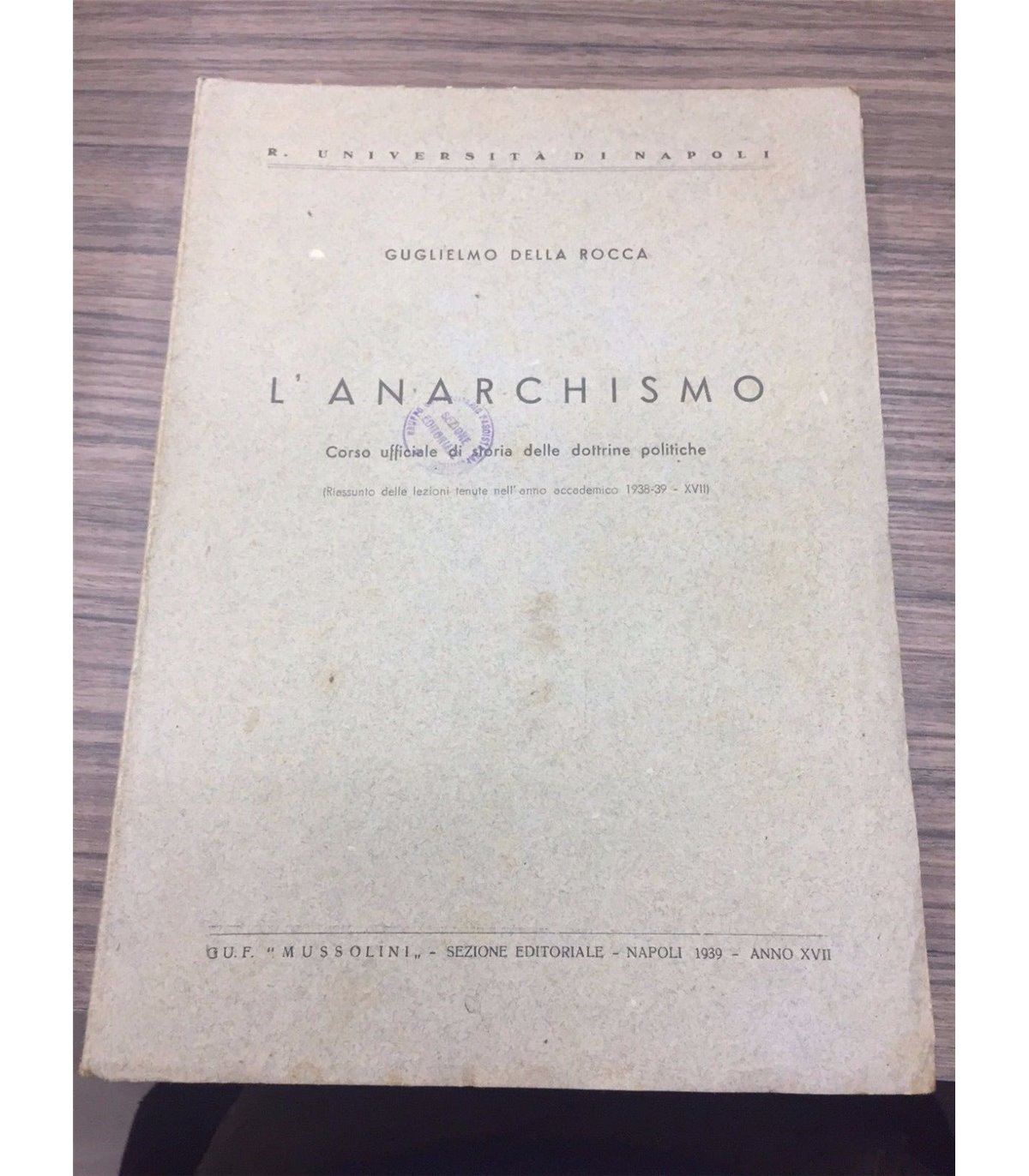 Corso ufficiale di storia delle dottrine politiche. Riassunto. Napoli. Guf 1939, 8°, pp. 86. Segni di studio a matita nel testo. Bross.