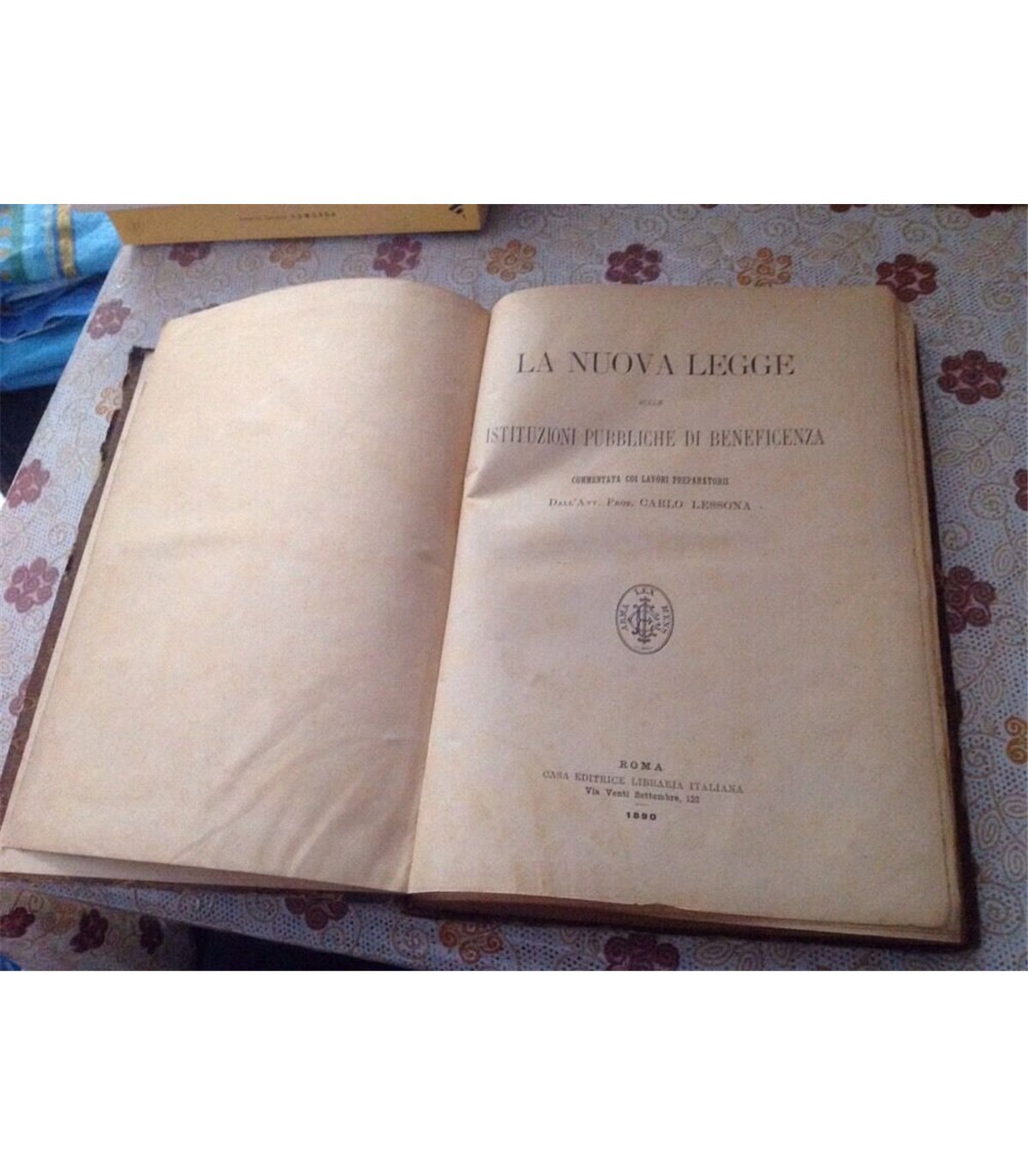 Commentata coi lavori preparatorii. Roma. Casa editrice libraria italiana 1890, 8', pp. 460. Tracce di matita alle pagine bianche delle sguardie che non lede il testo. Segni del tempo ma buon esemplare. Leg. Mz pelle, tit. in oro al dorso, con spellature.
