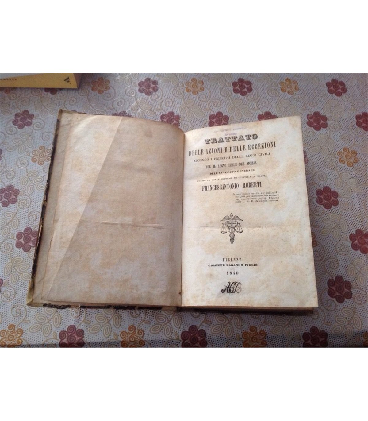 Firenze. Pagani e figlio 1840, pp. 357. Leg. Mz perg. Coeva, tit. al dorso calligrafati. Bruniture dovute al tipo di carta ma buon esemplare, Raro