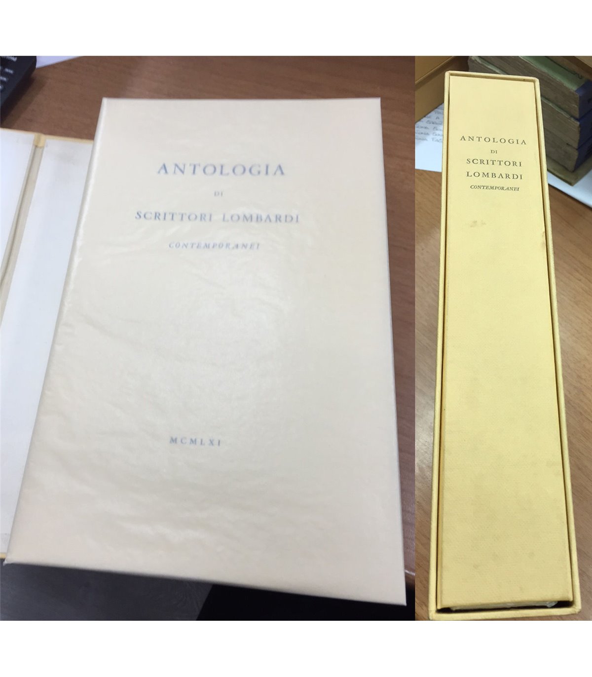 Antologia a cura di Luigi Carluccio. Alpignano. Edizioni Tallone 1961, 8°, pp. 300. Con un opera di Massimo Campigli in antiporta. Volume inserito in una doppia custodia rigida realizzata a mano su misura, rivestita esternamente con carta Ingres e recante sul dorso il titolo impresso tipograficamente. Brossura incampiciata editoriale. Edizione numerata di 400 esemplari su carta Magnani di Pescia. Ns esemplare n. 238. Buon esemplare.