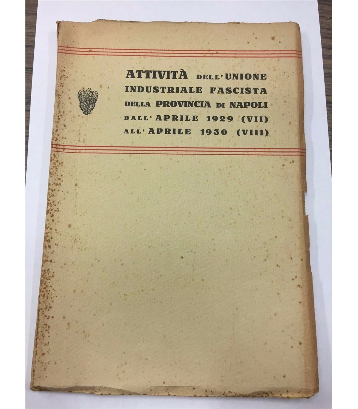 Attiviltà dell'Unione industriale Fascista della Provincia di Napoli. ITEA 1930, 8°, pp. 64, con grafici f.t. Bross. Bruniture.