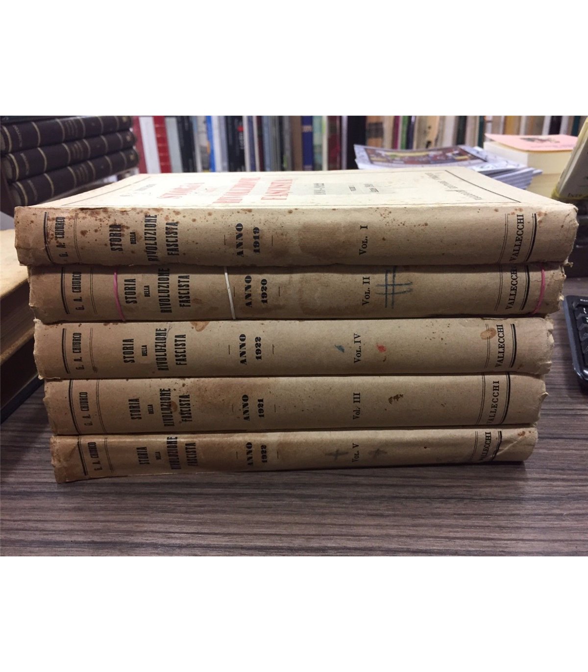 Firenze. Vallecchi 1929, 8°, pp. 458+490+506+656+476, con figure e tavole in nero nel e f.t. Leg. cart. edit. dorsi stanchi e con piccole mancanze dovute al tipo di legatura specialmente al secondo e al quinto volume. Bruniture e qualche piccolo segno marginale di studio,