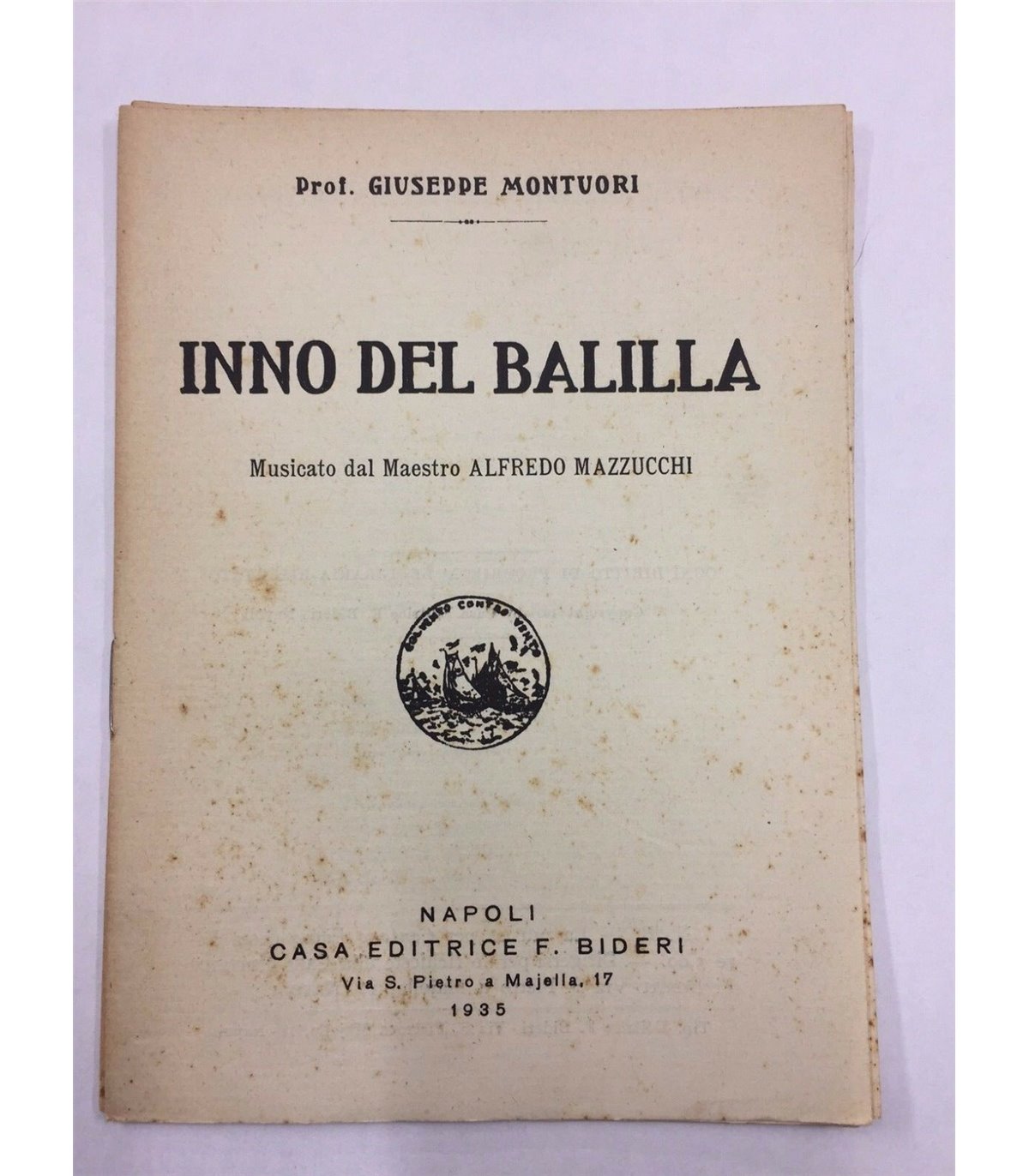 Musicato dal M. Alfredo Mazzucchi. Napoli. Bideri 1935, 16°, pp. 8. Bruniture.