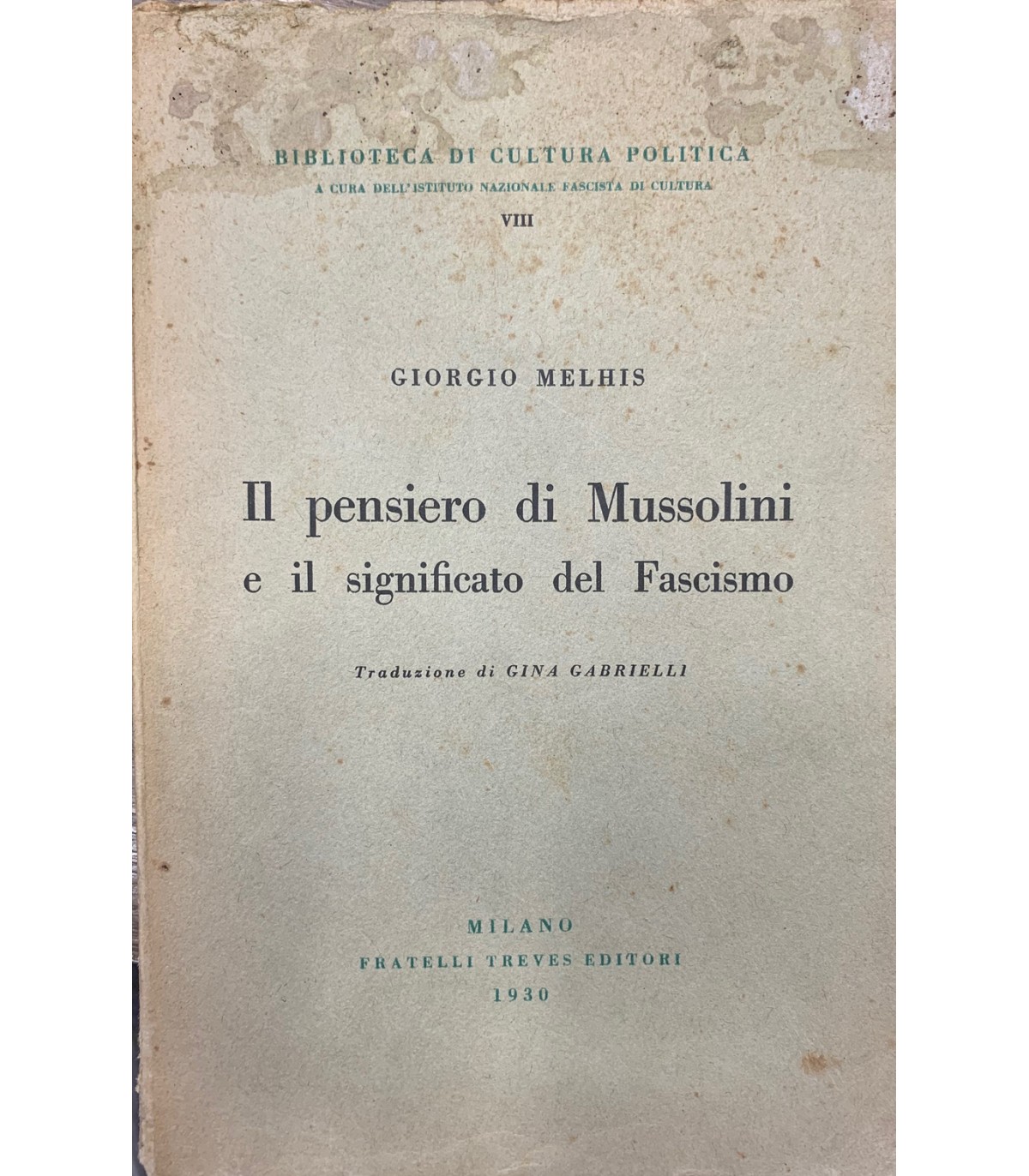 Traduzione di Gina Gabrielli. Milano. Treves 1930, 8°, pp. 160. Bruniture.