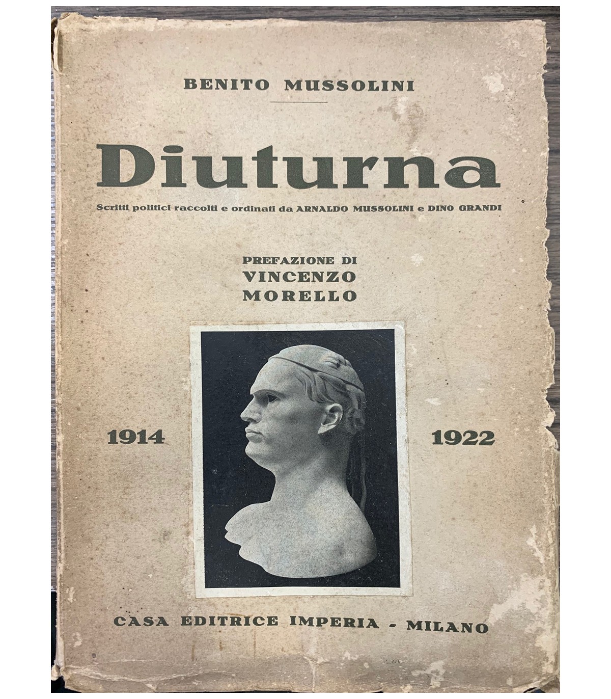 Scritti politici raccolti e ordinati da Arnaldo Mussolini e Dino Grandi. 1914-1922. Milano. Imperia 1924, 16°, pp. 346. Bruniture e segni del tempo. Bross.