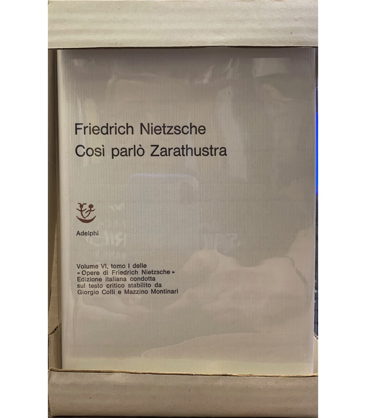 Volume VI tomo I delle "Opere". Edizione italiana condotta sul testo critico stabilito da Giorgio Colli e Mazzino Montanari. Milano. Adelphi 1973, 16°, pp. 522. Leg. Edit., sovracc. Cofanetto.