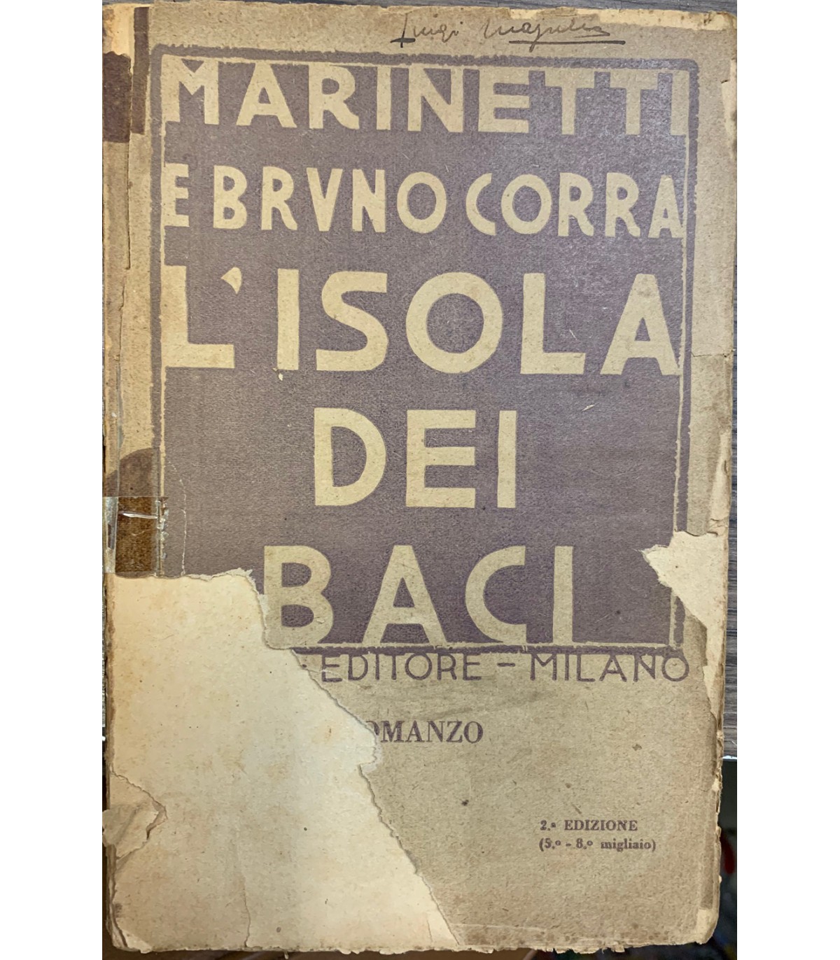 Romanzo erotico sociale. Seconda edizione. Milano. Facchi 1919, 16°, pp.160. Bross. Copertine con mancanze. Sciupato e segni del tempo.
