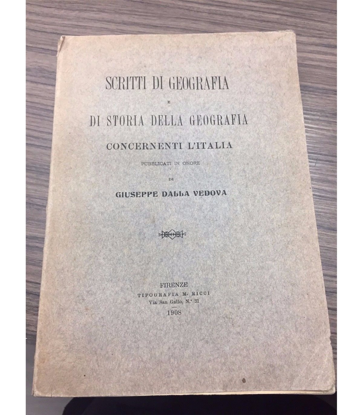 Pubblicati in onore di Giuseppe Dalla Vedova. Firenze. Ricci 1908, 8°, pp. XXXI+402, con tavole in nero e a colori nel e f.t. Bross. Edit. Segni del tempo marginali ma buon esemplare.