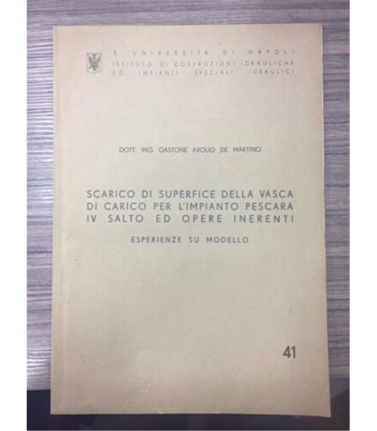 Esperienze su modello. Estratto (1940?), 8°, pp. 28. Illustrato.