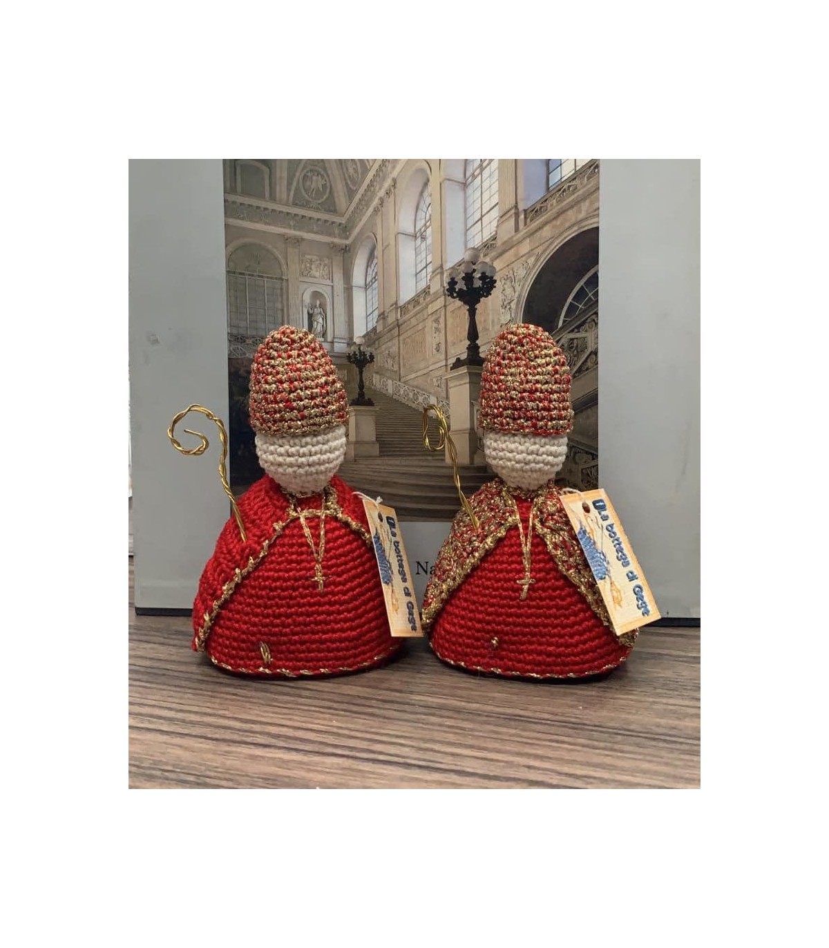 Statuetta in filo tutta fatta a mano con manto. Dimensioni circa 9x12. In caso di ordine se mancante i tempi di creazione sono di 7 giorni lavorativi. Al momento dell'ordine scegliete se lo preferite con il manto rosso o il manto dorato