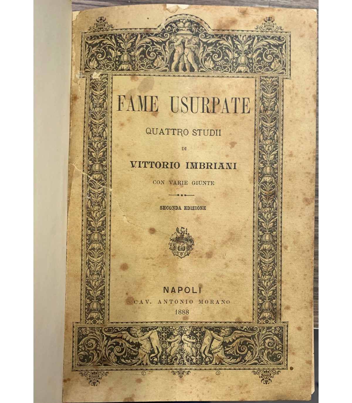 Quattro studii con varie giunte. Seconda edizione. Napoli. Morano 1888, 16°, pp. 364. Bruniture e segni del tempo ma buon esemplare. Leg. Mz. Tela, tit. al dorso. Conserva le copertine originali. Raro.