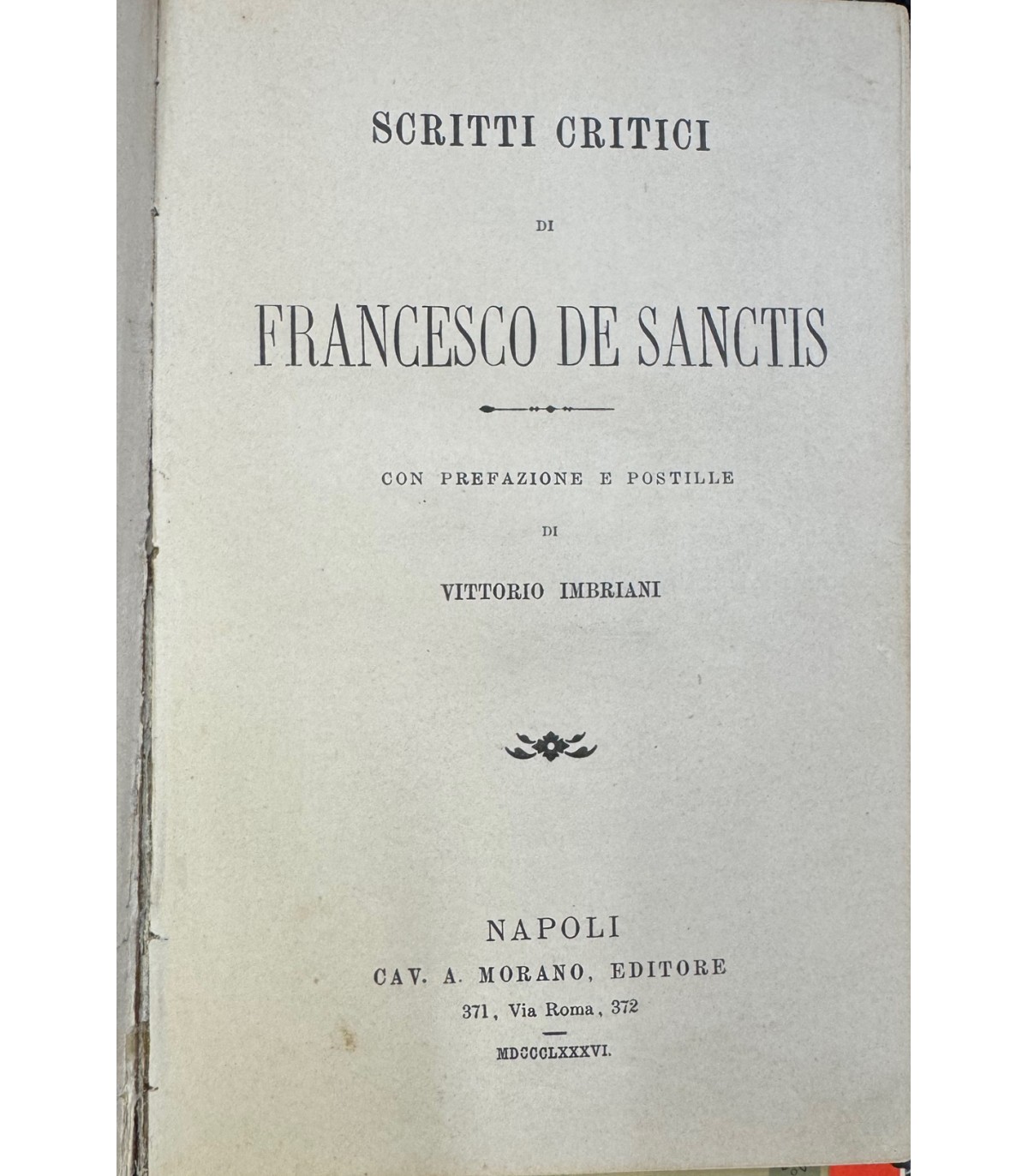 Con prefazione e postille di Vittorio Imbriani. Napoli. Morano 1886, 16°, pp. 122. Dorso stanco. Leg. Cart. Muto.
