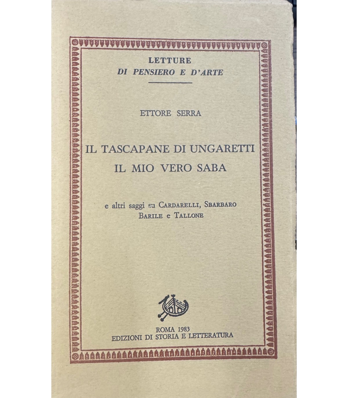 E altri saggi su Cardarelli Sbarbaro Barile e Tallone. Roma. Edizioni storia e letteratura 1983, 16°, pp. 242.