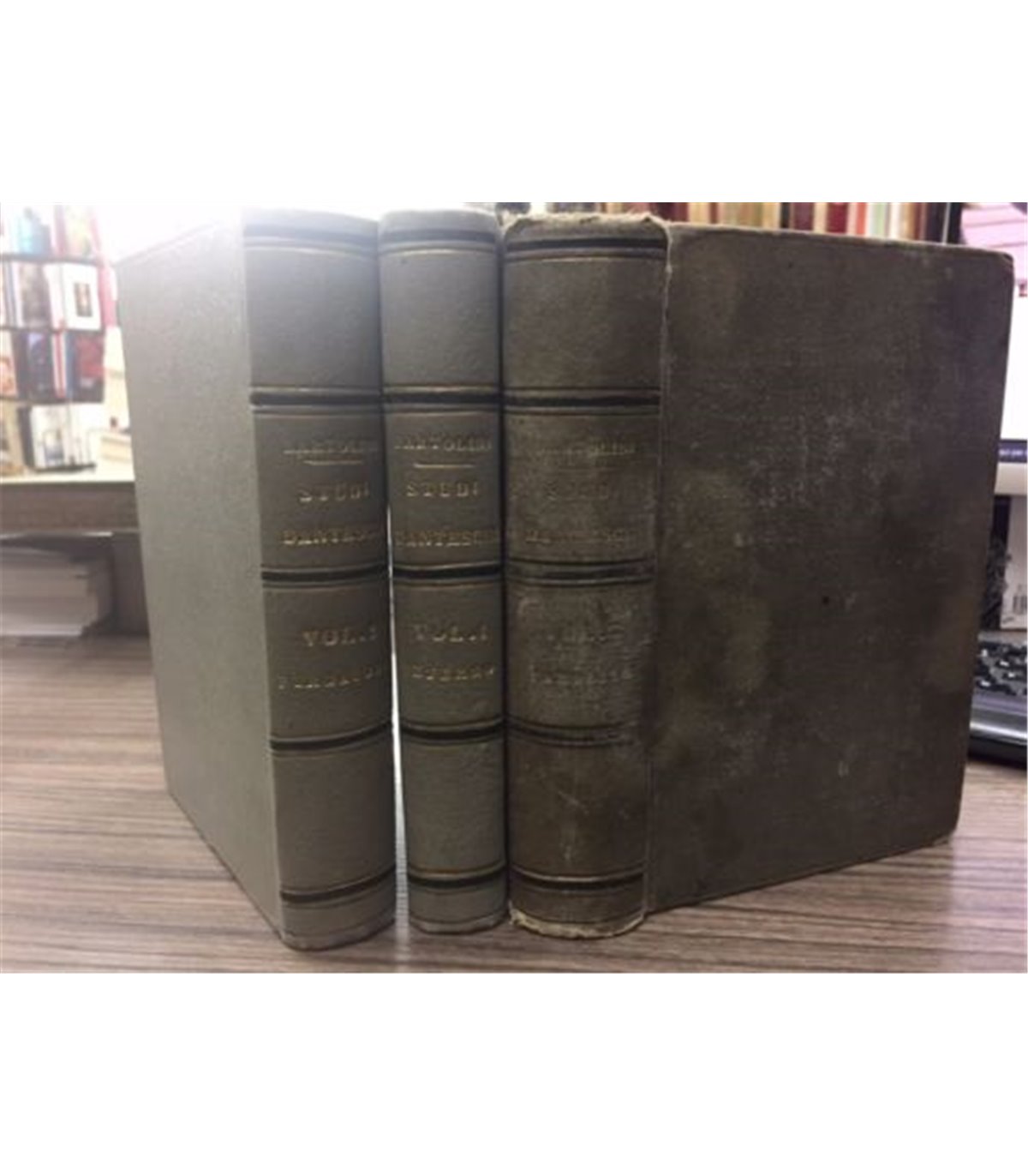 Inferno - Purgatorio - Paradiso. Siena. S. Bernardino Editore 1889, 16°, pp. 454+524+712. Leg. T.t. coeva, tit. in oro al dorso. Bruniture e segni del tempo specialmente al primo volume ma buon esemplare. Raro.