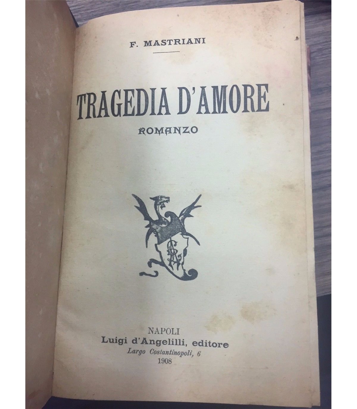 Romanzo. Napoli. Luigi d'Angelilli 1908, 16°, pp. 150. Mancanza marginale a un paio di pagine. Segni del tempo e bruniture. Leg. Mz tela, muta.