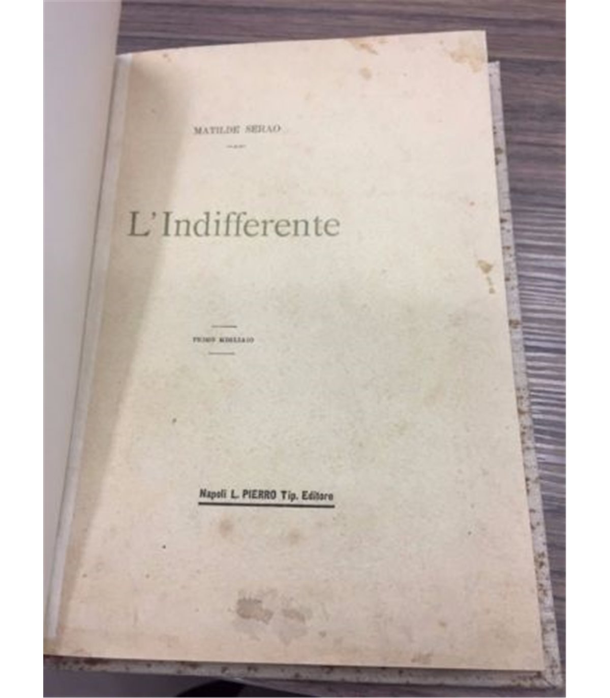Napoli. Pierro S.d. (1896), 16°, pp. 184. Bross. edit. con bruniture sparse in copertina sciupata e al margine superiore di alcune pagine che non lede il testo. Mancanze al dorso. Edizione a margini ampi. Prima rara edizione.