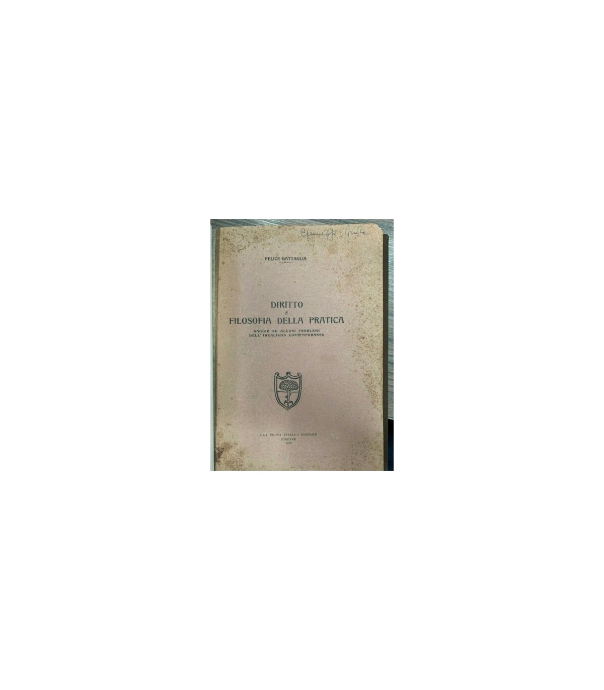 Saggio su alxcumi problemi dell'idealismo contemporaneo. Firenze. La Nuova Italia 1932, 8°, pp. 236, qualche firma d'app. e un paio di segni di studio che non ledono il testo. Leg. T.t. tass. Moderna. Conserva le copertine originali. Raro.