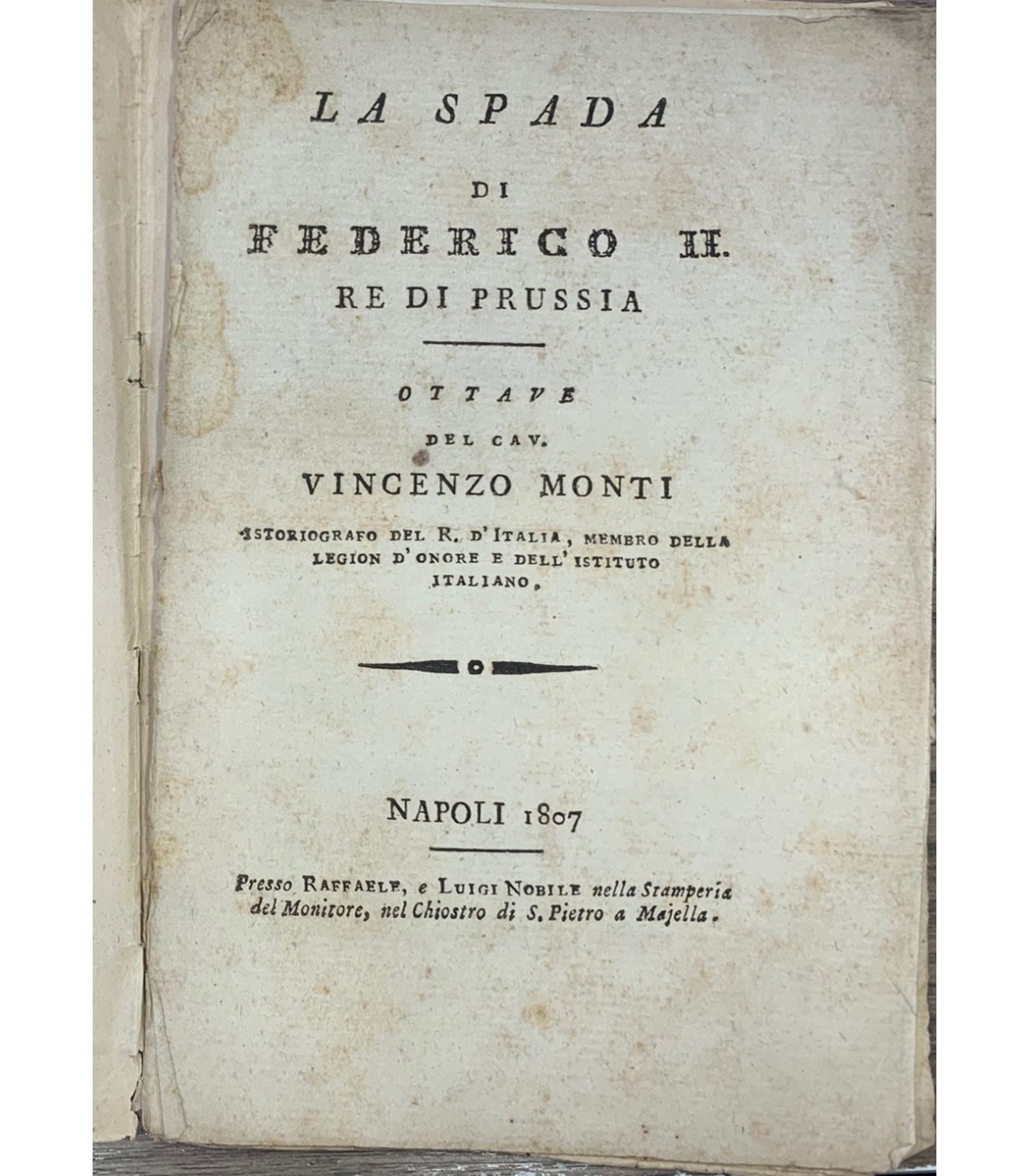 Ottave . Napoli 1807, 16°, pp. 12. Fogli sciolti. Bruniture.