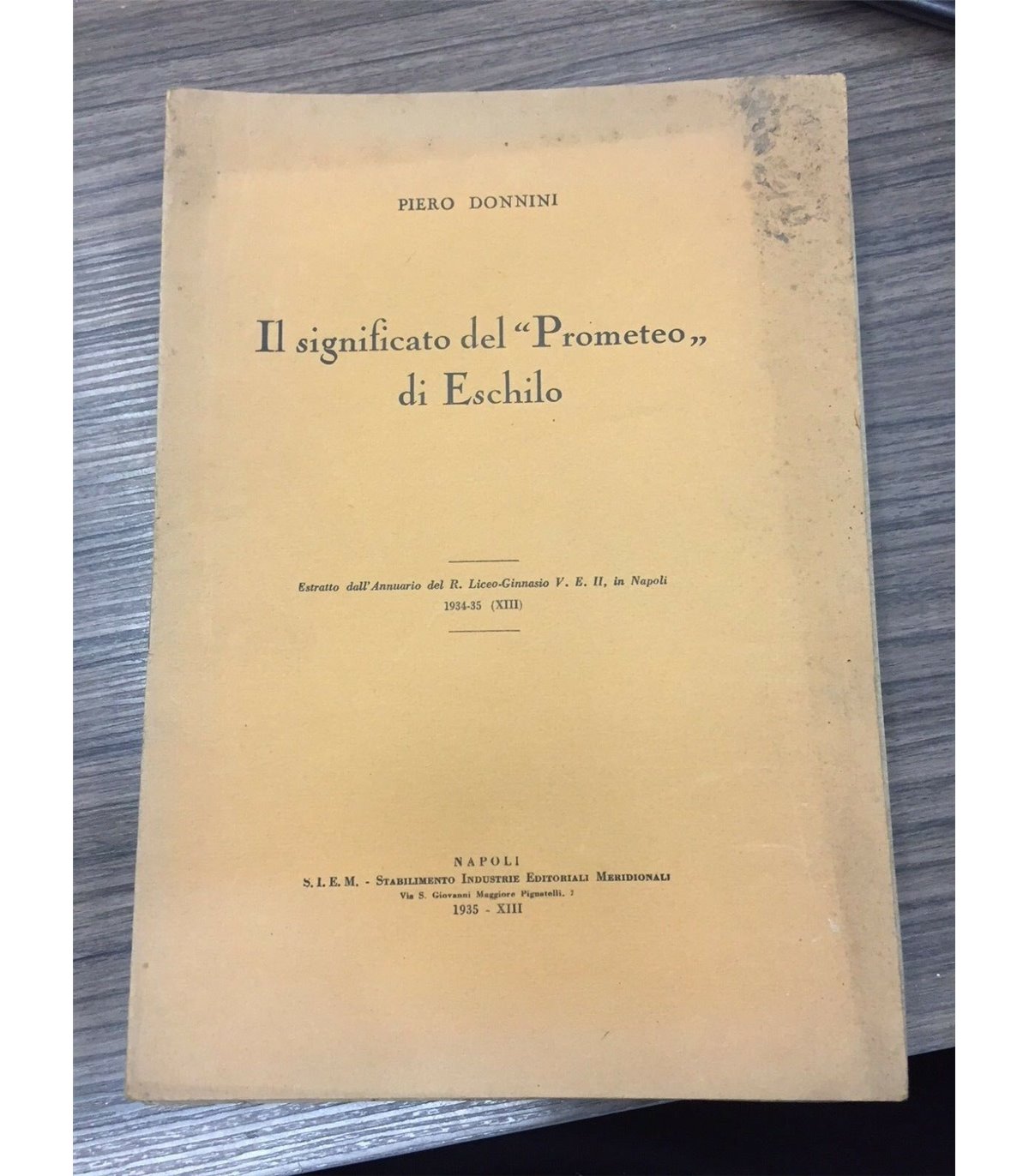 Estratto dall'Annuario del R. Liceo Ginnasio V.E. II, in Napoli. Siem 1935, 8°, pp. 8. Bruniture in copert.