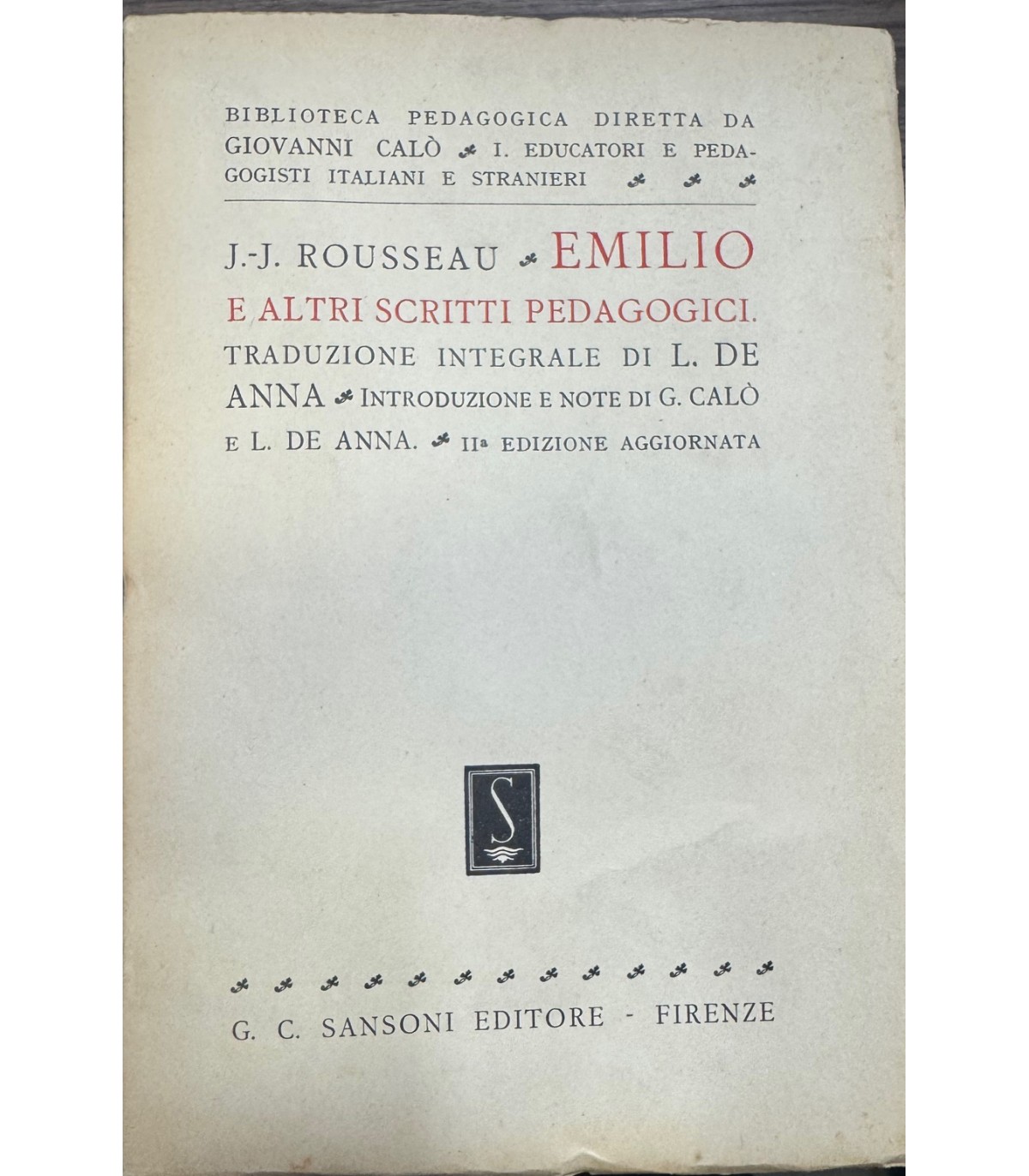 Traduzione integrale di L. De Anna. Firenze. Sansoni 1950, 16°, pp. 556. Bross. Intonso. Segni del tempo.