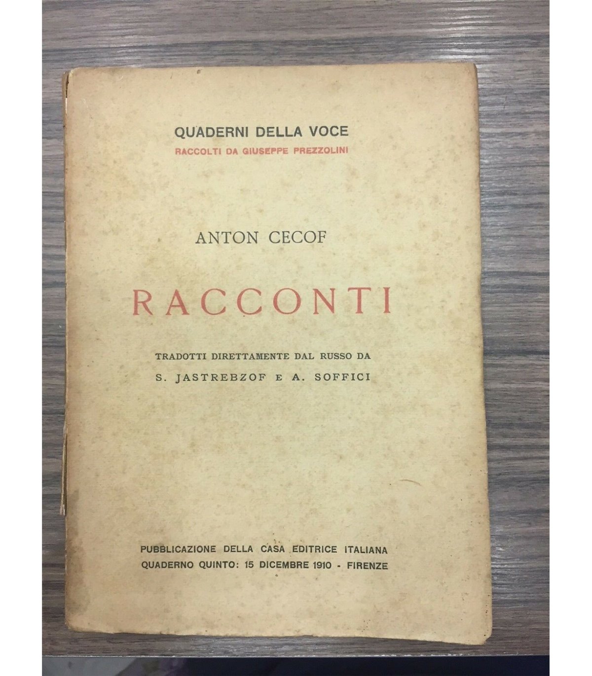 Tradotti direttamente dal russo da S. Jastrebzof e A. Soffici. Firenze. Quaderni della Voce 1910, 16°, pp. 125. Bruniture marginali alle ultime pagine. Dorso stanco e con piccola mancanza.