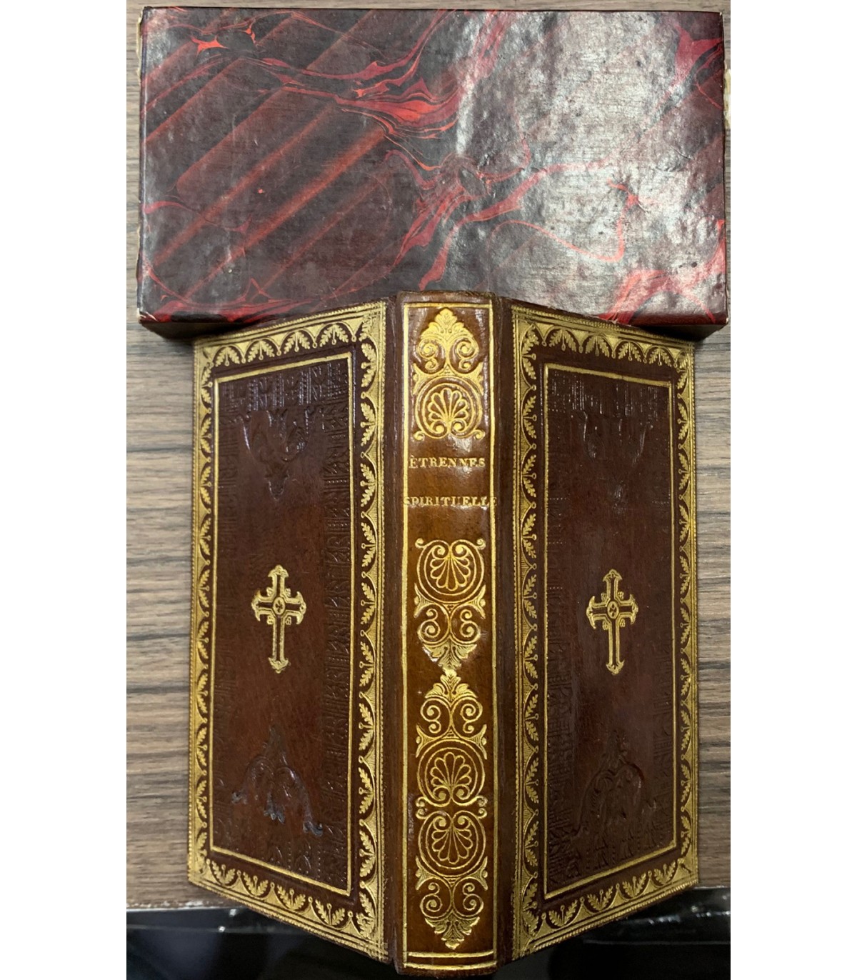 Contenant les Messeset Wépres del principales Fetes dell'anne. Paris. Fournier s.d. metò 800), 24°, pp. XL-294. Splendida legatura in piena pelle, tit. e fregi in oro e a secco al piatto e al dorso. Cofanetto.