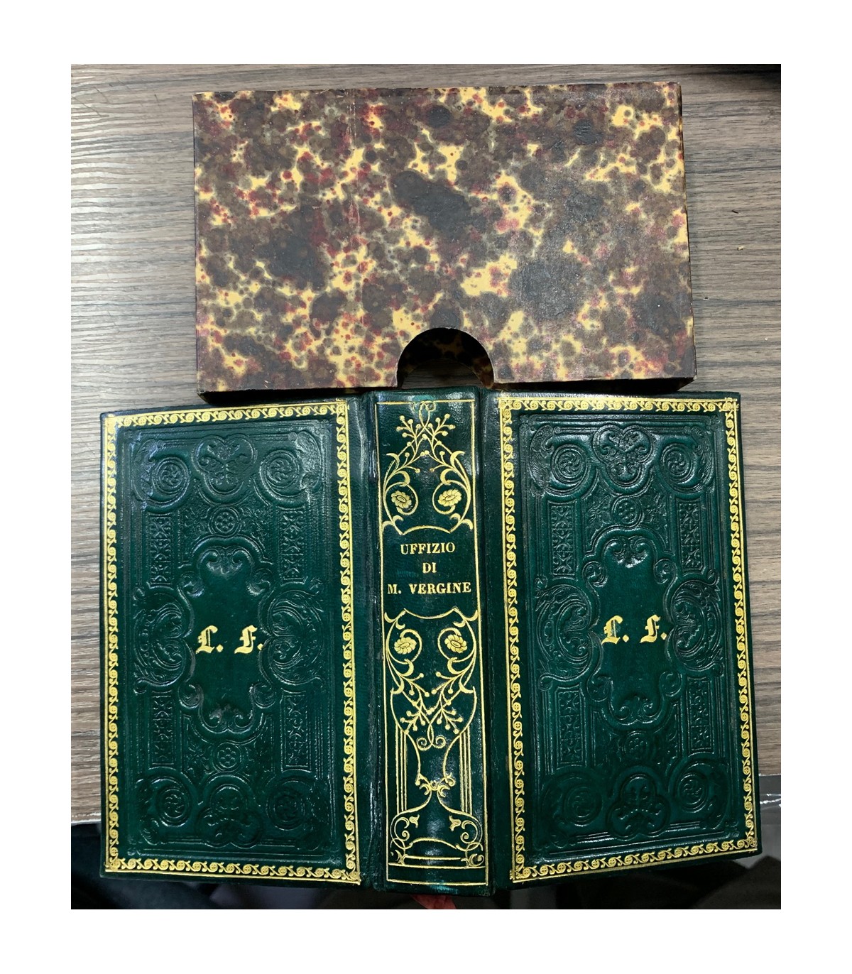 De morti, dello Spirito Santo, della Santa Croce, de' Sette Dolori di Maria SS. Salmi Graduali e Prenitenziari. Con versione italiana di Monsignor Martiti. Napoli. Simoniana 1841, 16°, pp. 562. Incisione all'antiporta. Splendida legatuta in piena pelle con fregi in oro e a secco al piatto e tit. e fregi in oro al dorso. Cofanetto.