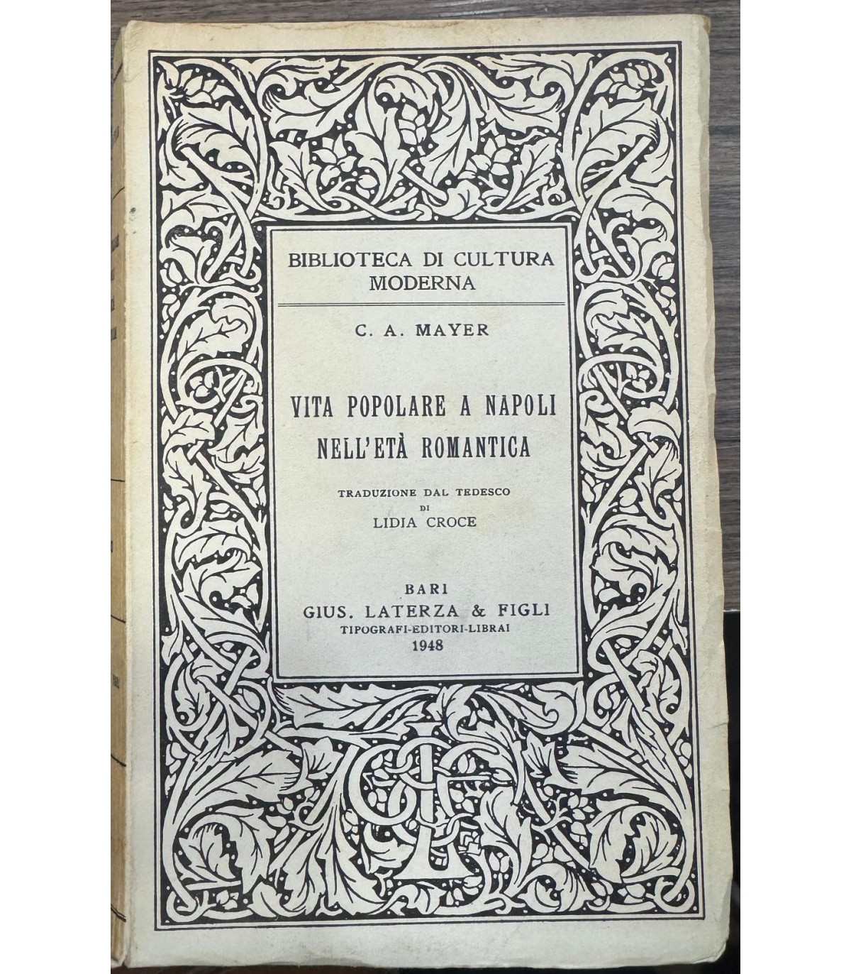 Traduzione dal tedesco di L. Croce. Bari. Laterza 1948, 16°, pp. 364. Bross. Edit.