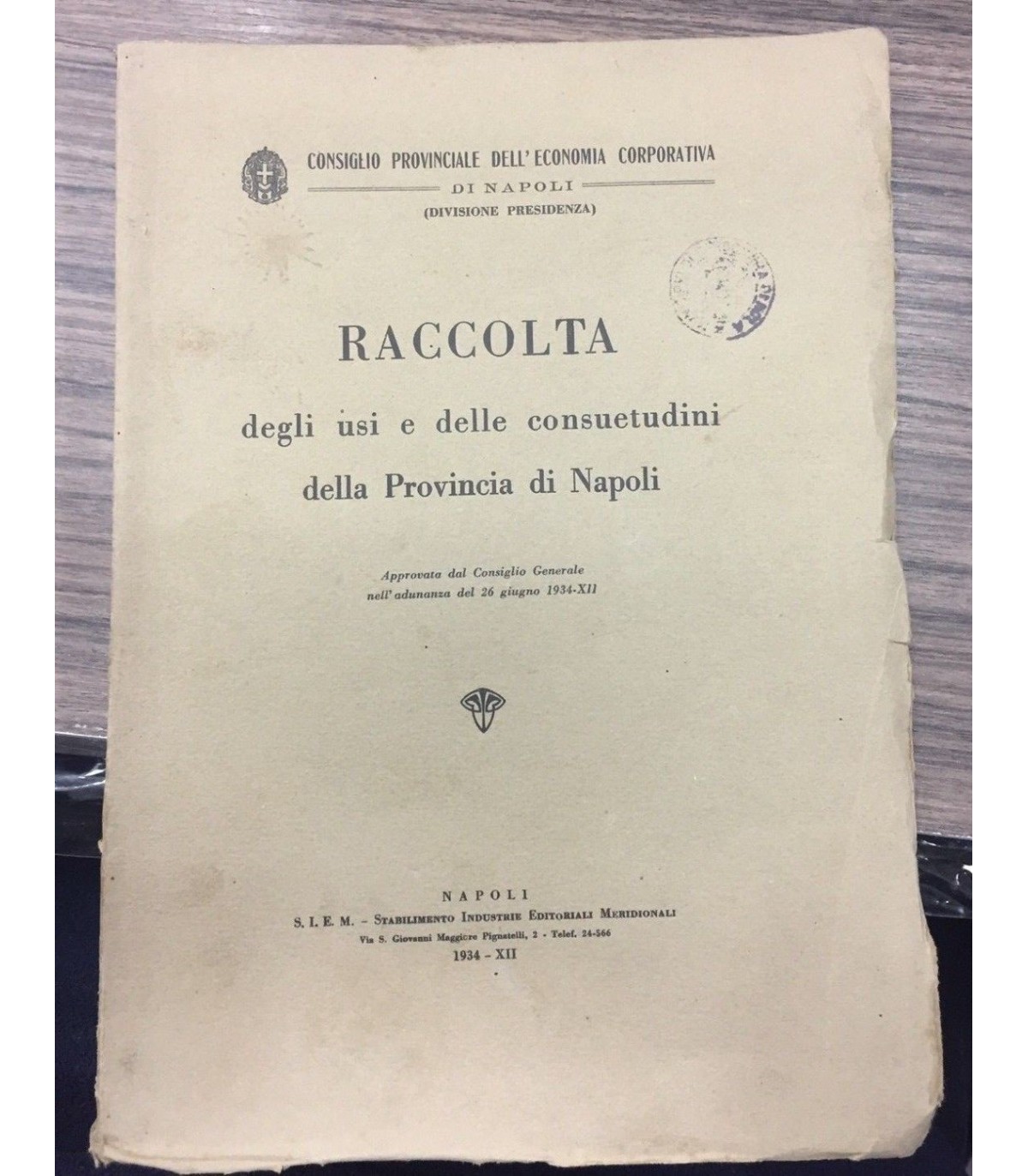 Napoli. Stabilimento Industriale Editoriali Meridionali 1934, 8°, pp. 234. Timbro di biblioteca estina. Bross. Con segni del tempo.