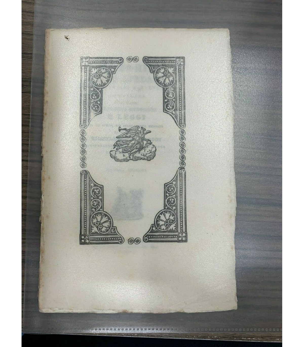 E leggi per lo stesso Pio stabilimento emanate da monsignore G. Arigoni governatore generale della marca e visitatore apostolico. Sanseverino. Ercolani 1842, 8°, pp. 46. Bross. Coeva incisa, mancanze al dorso.