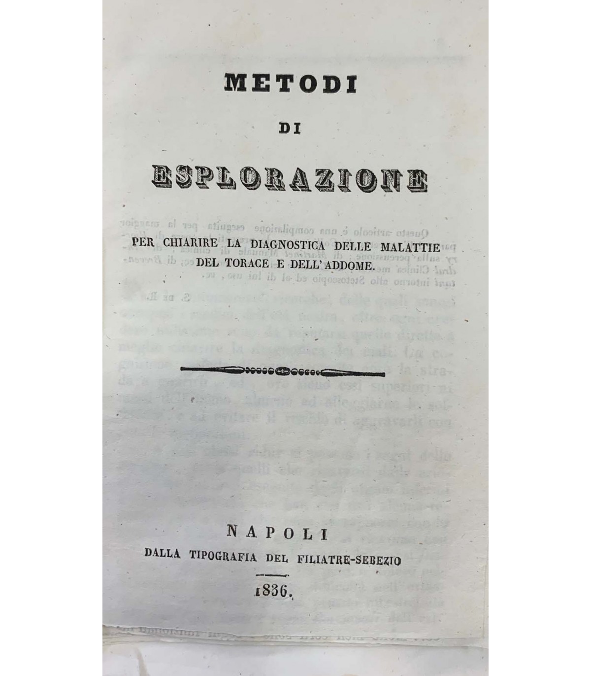 Napoli. Tipografia del Filiatre-Sebezio 1836, 16°, pp. 64, tagli stretti al margine inferiore, con 3 tavole figurate incise fuori testo. Bross. Muta.