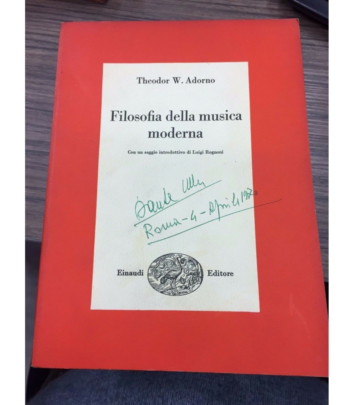 Con un saggio introduttivo di Luigi Rognoni. Torino. Einaudi 1968, 8°, pp. 212. Tracce di matita e firma alla copertina e alla prima pagina.