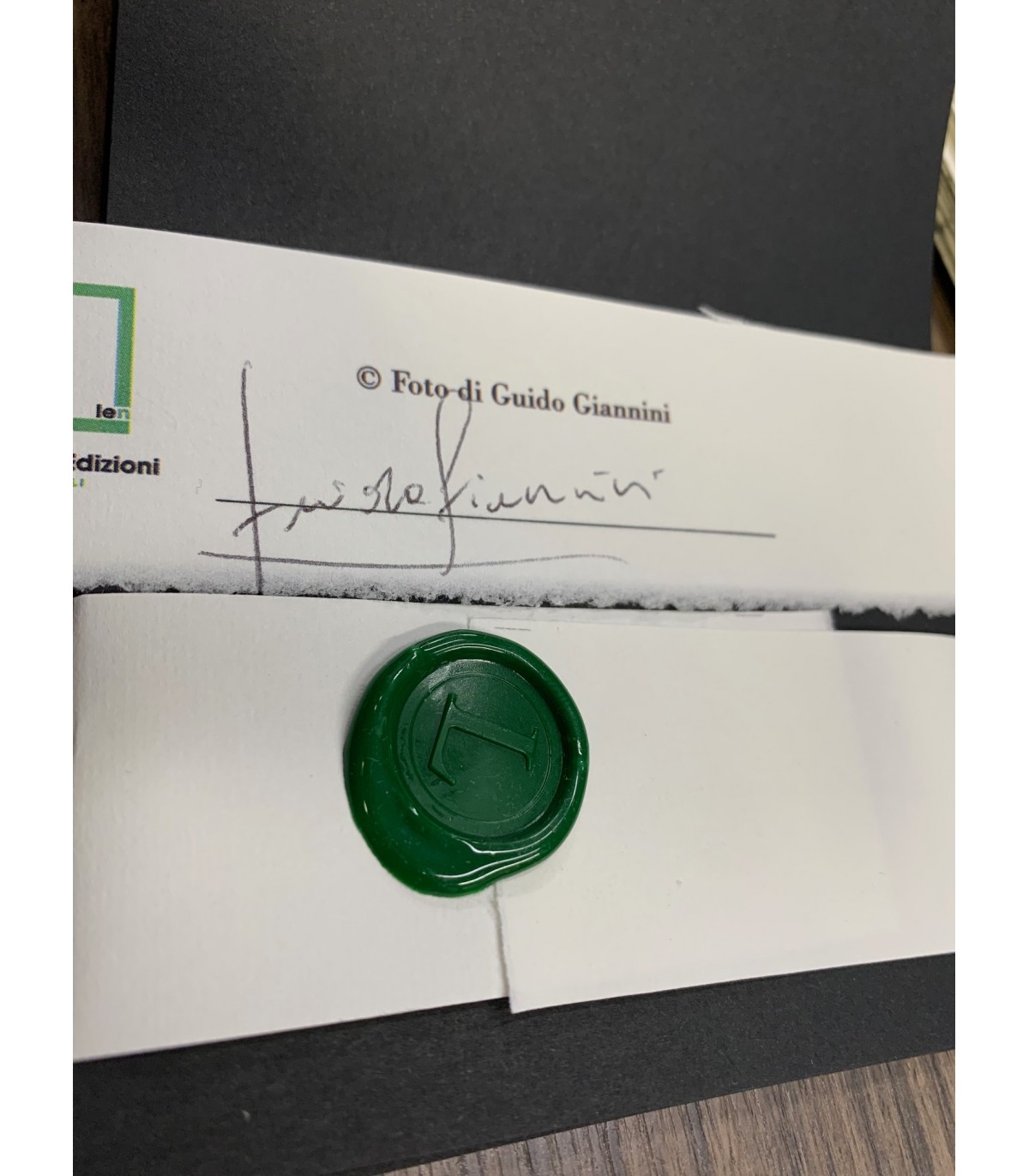 Napoli 2022, formato (125x160 mm), pp. 8. Presentazione di Moni Ovadia. Con 6 foto in nero applicate su cartoncino unite con fascetta in carta d'Amalfi e firmate dall'Autore con timbro in ceralacca. Composta con caratteri Bodoni MT e stampata su carta Amalfi di Amatruda con cofanetto e legatura a filo artigianale prodotto in 180 esemplari numerati. .