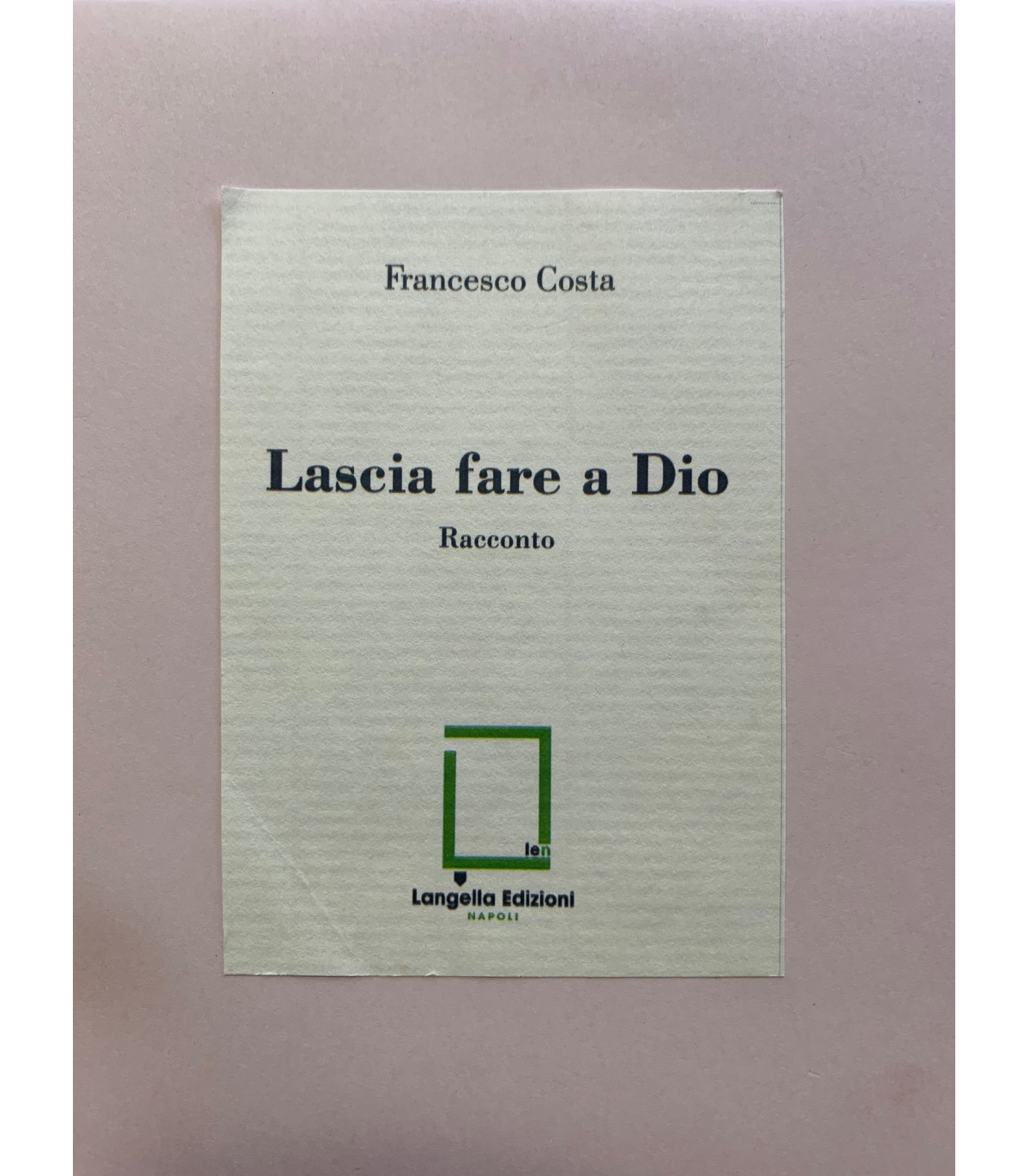 Napoli 2023, formato (125x160 mm), pp. 32. Composta con caratteri Bodoni MT e stampata su carta Amalfi di Amatruda con cofanetto e legatura a filo artigianale prodotto in 180 esemplari numerati e firmati dall’Autore, In allegato un'opera d'arte in acrilico a mano e firmata dall'artista Salvatore Couturier.