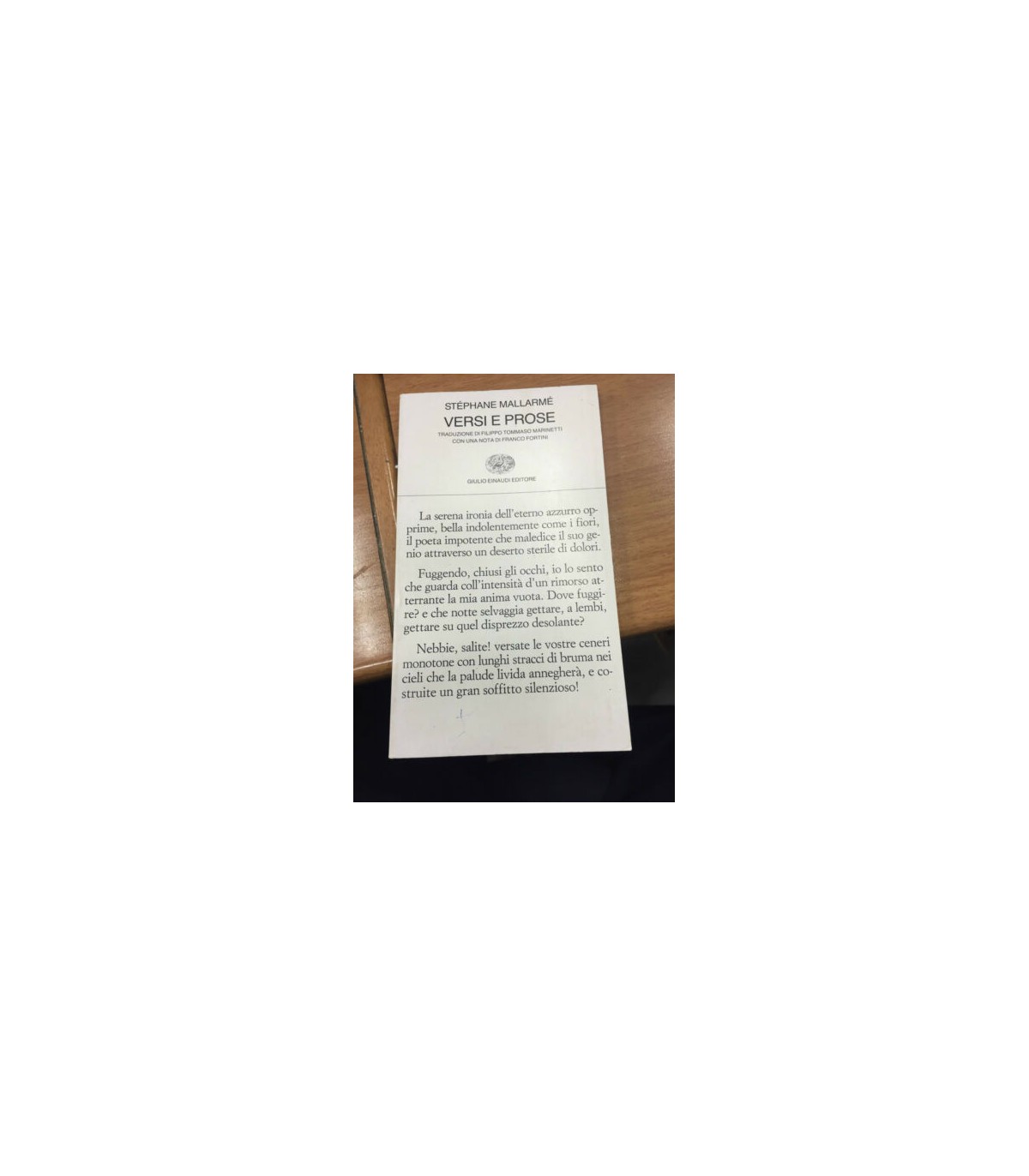 Traduzione di Filippo Tommaso Marinetti. Con una nota di Franco Fortini. Torino. Einaudi 1987, 16°, pp. 58. "Collezione poesia".
