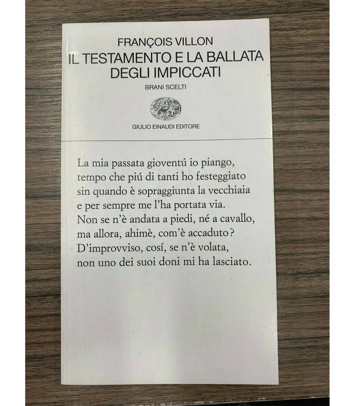 Brani scelti. Torino. Einaudi 2010, 16°, pp. 42. Collezione poesia.