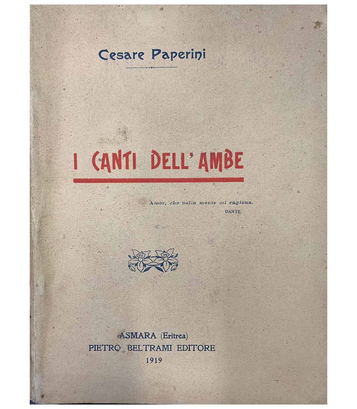 Asmara. Beltrami 1919, 16°, pp. 174. Bross. Edit. Bruniture.