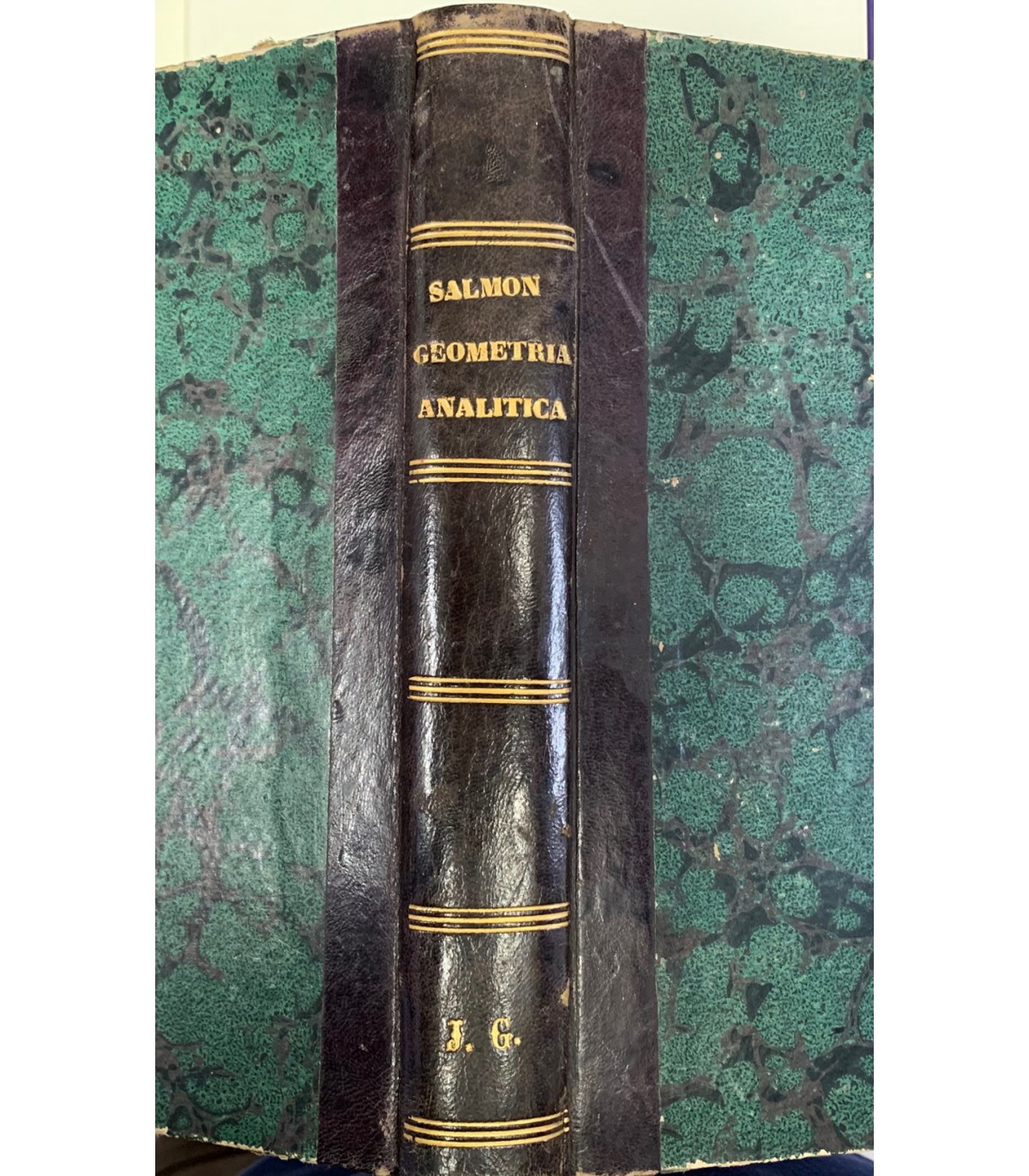 Contentente un cenno dei più importanti metodi moderni algebrici e geometrici. Versione italiana sulla quarta edizioine inglese per N. Salvatore Dino. Napoli. Pellerano 1868, 8°, pp. XX+306. Unito: Salmon Giorgio. Elementi di geometria analitica a tre coordinate. Estratto del trattato. Napoli. Pellerano 1870, pp. 108. Leg. mz pelle tit. in oro al dorso.