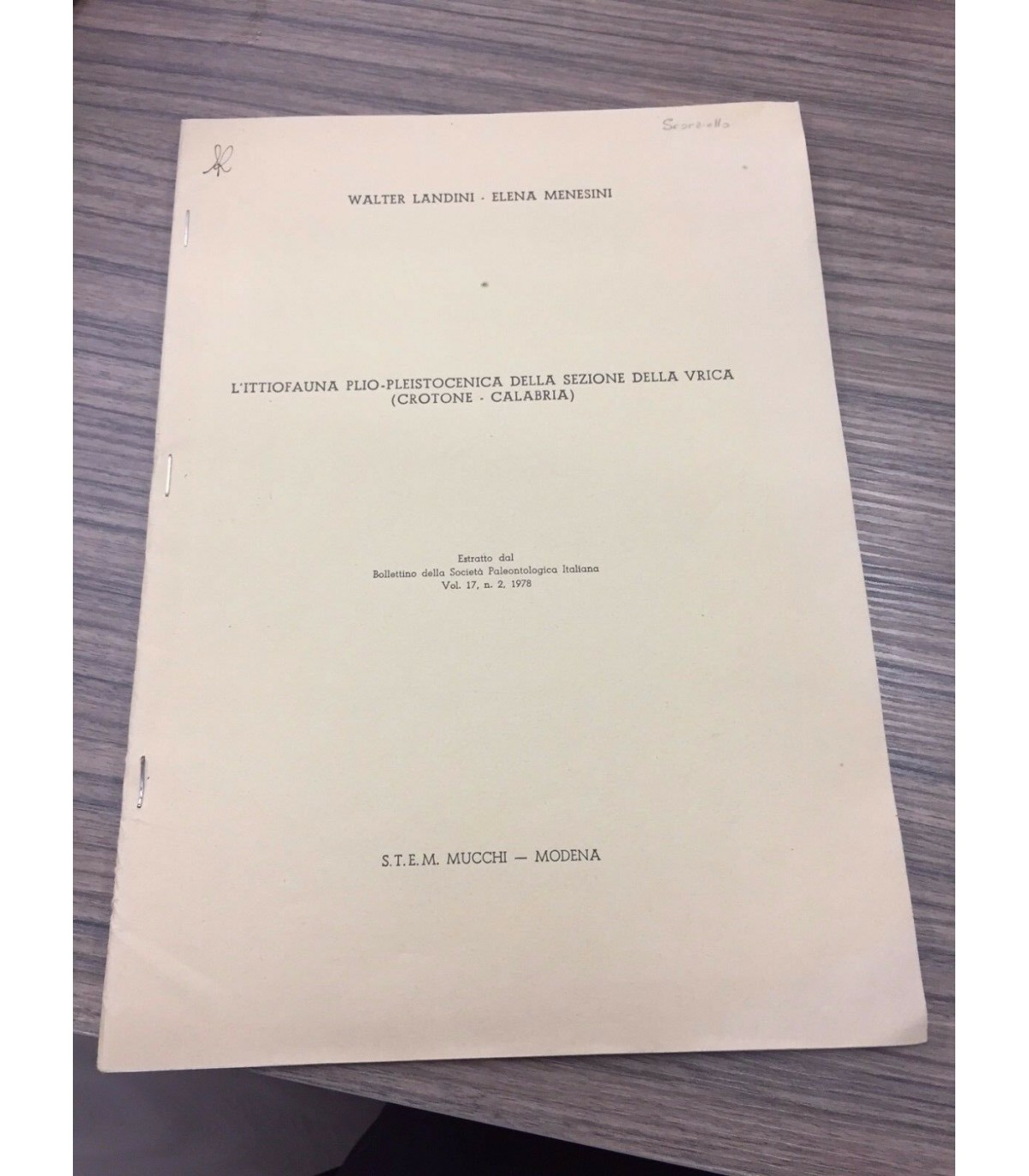 L'ittiofauna plio-pleistocenica della seczione della vrica (Crotone - Calabria)