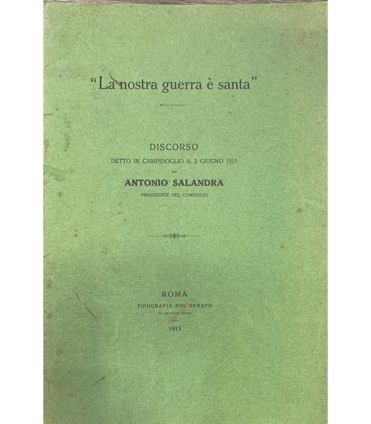 Discorso detto in Campidoglio il 2 giugno 1915. Roma. Tip. Del Senato 1915, 16°, pp. 22. Segni del tempo.