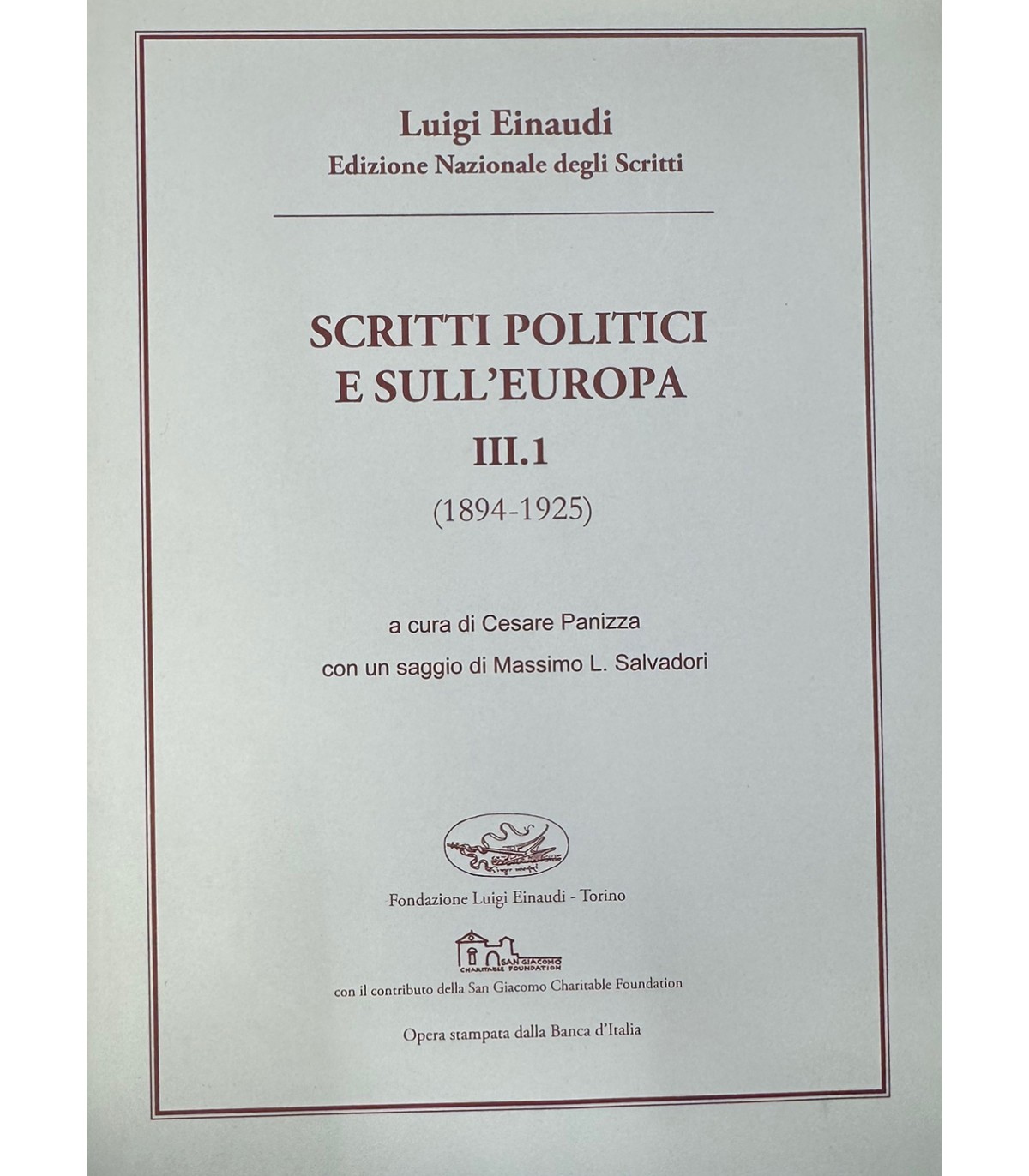 (1894-1925). A cura di Cesare Panizza. Torino. Fondazione Luigi Einaudi 2016, 8°, pp. 820. Leg. Edit.. Sovracc.