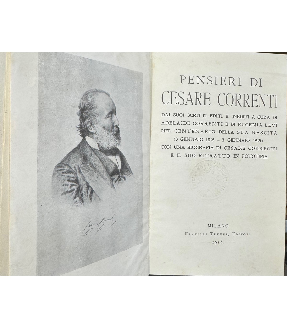 Dai suoi scritti editi e inediti a cura di Adelaide Correnti e di Eugenia Levi nel centenario della sua nascita 13 gennaio 1815 - 3 gennaio 1915. Con una biografia di Cesare Correnti e il suo ritratto in fototipia. Milano. Treves 1915, 16°, pp. 299. Leg. mz tela tass..