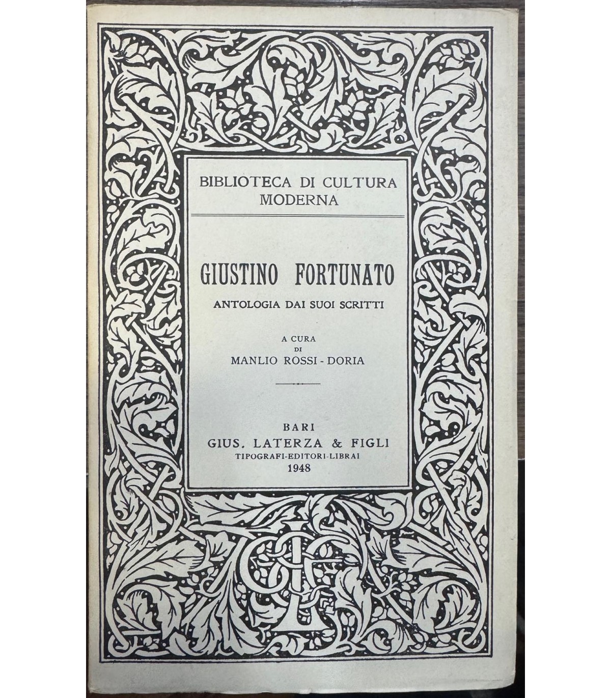 Antologia dai suoi scritti. Bari. Laterza 1948, 16°, pp. 276. Bross. Piccolissima mancanza all'angolo della prima pagina.